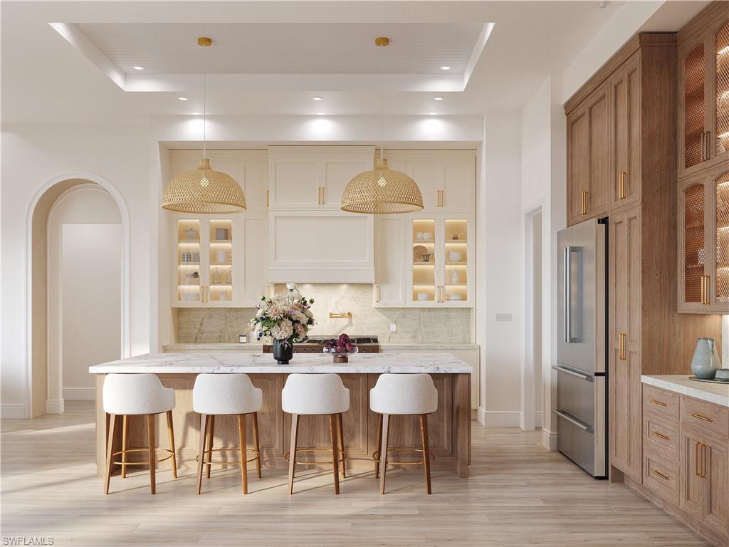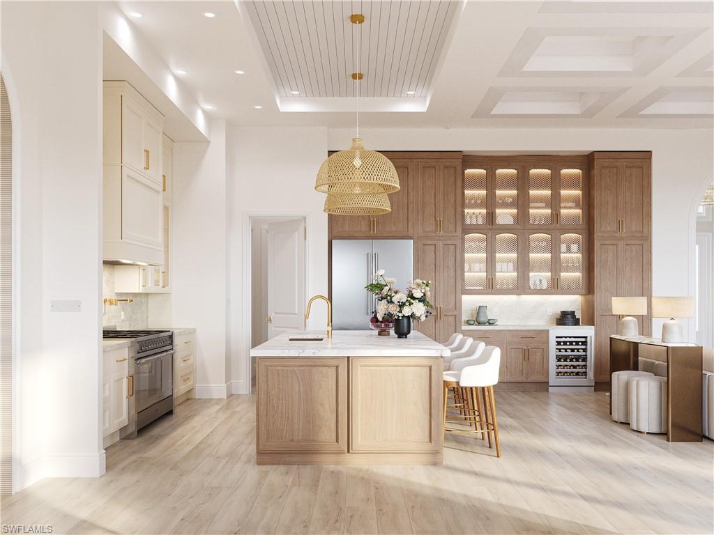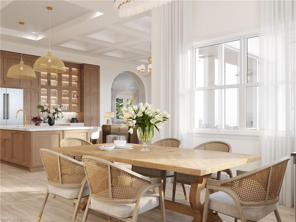 Under construction and slated for completion June 2026, this exceptional new residence at 335 Burning Tree Drive presents a RARE OPPORTUNITY TO PERSONALIZE A LUXURY HOME in one of Naples’ most desirable settings. Offering over 4,200 square feet of thoughtfully designed space, this 4-bedroom plus den/office, 3-bathroom, 3 car garage home blends refined coastal elegance with modern functionality. Picture jaw dropping CEILING HEIGHTS of up to 14 FT that engulf the home with NATURAL LIGHT through a plethora of large-scale impact resistant windows and 10 ft sliding doors. The 8 in wide plank white oak floors lead you throughout the open concept design of the home. The chef-inspired kitchen features walnut cabinetry, quartzite countertops, Thermador appliances with a gas range, pantry, and bar with a wine fridge. The spacious primary suite spans an entire wing of the home. Offering total privacy, the massive bedroom opens up to the gorgeous lanai and features two large walk-in closets, a spa like bathroom with marble finishes, two separate vanities , a makeup station, massive walk-in shower with bench seating + multiple shower heads, and soaking tub. Three additional guest bedrooms and a dedicated office provide flexibility for family, guests, or work-from-home needs. High-end finishes, carefully curated design selections, and quality craftsmanship are evident throughout. The outdoor living space is anchored by a RESORT-STYLE SALTWATER POOL featuring a sun-shelf with bubbler & spa, a fully equipped OUTDOOR KITCHEN with grill, sink, and fridge, and pool cage-ideal for enjoying Naples’ year-round sunshine and entertaining guests in style. Set on a lush, private lot, in an X FLOOD Zone-no flood insurance necessary; the home enjoys a tranquil backdrop of mature landscaping. This home is perfectly situated directly across the street from the manicured private GOLF COURSE of THE COUNTRY CLUB OF NAPLES—delivering the best of serene privacy and picturesque surroundings without mandatory membership. This members-only club features a golf course designed by Bill Diddel that recently underwent an $8 million restoration, tennis courts, pickleball courts, clubhouse with restaurant, and endless social activities. Best of all, this community has NO mandatory HOA- no fees, and no rental restrictions! With construction still underway, buyers have the unique opportunity to customize select finishes and details to suit their personal taste. Located minutes from downtown Naples, beaches, dining, shopping, and FANTASTIC SCHOOLS, this home delivers luxury living in a premier location. VIEW VIRTUAL TOUR TO WALK THROUGH THIS INCREDIBLE HOME. More photos coming soon! Some photos in this listing contain virtual renderings.