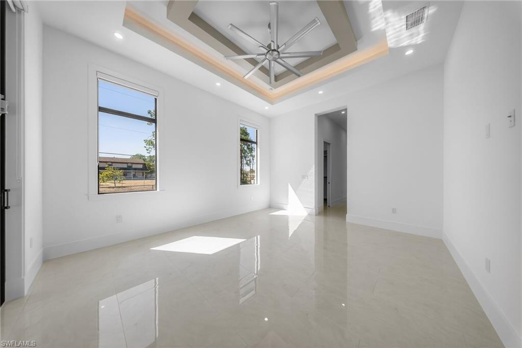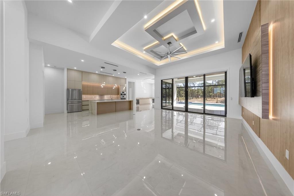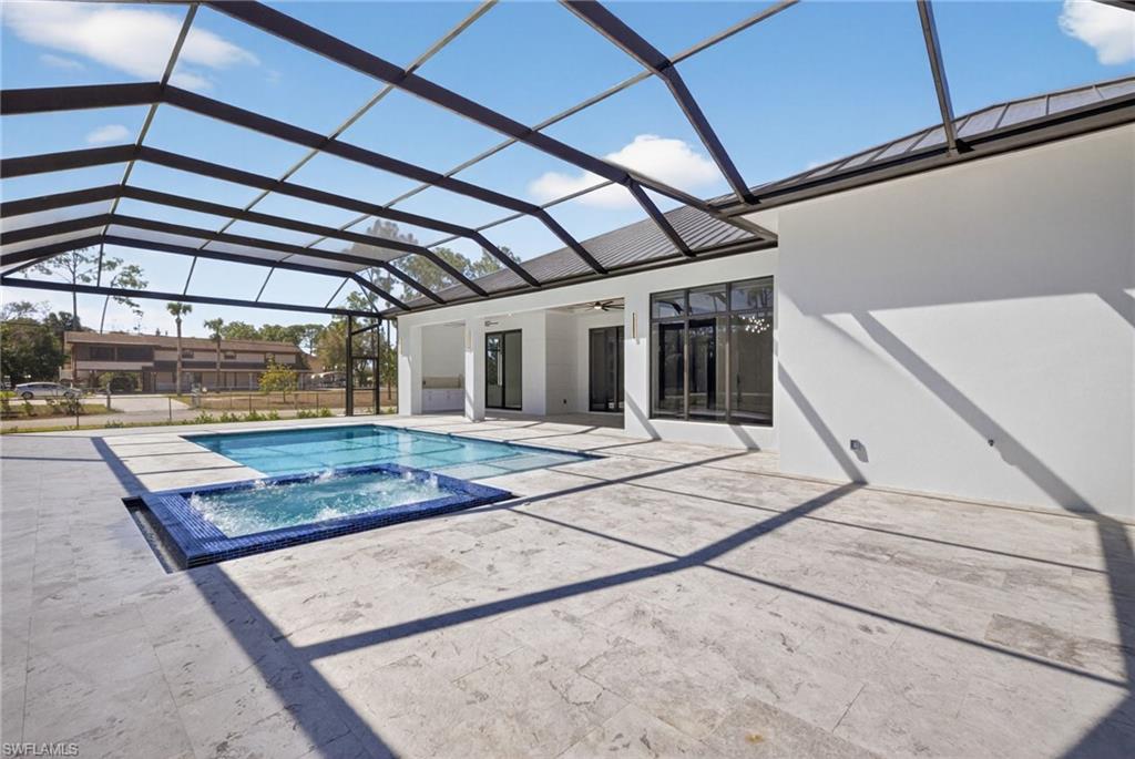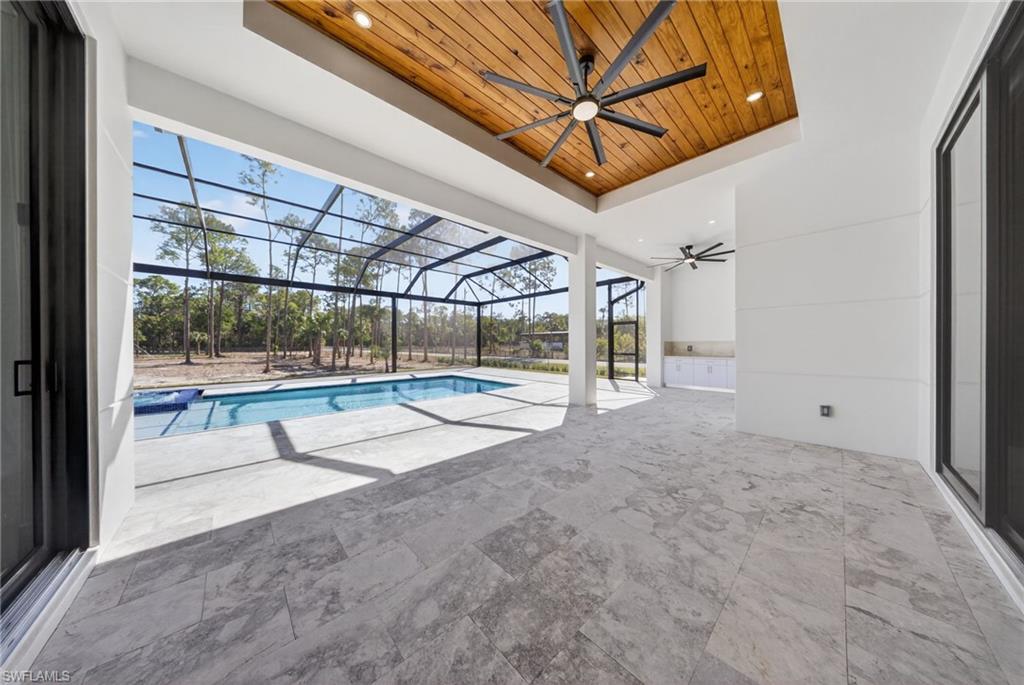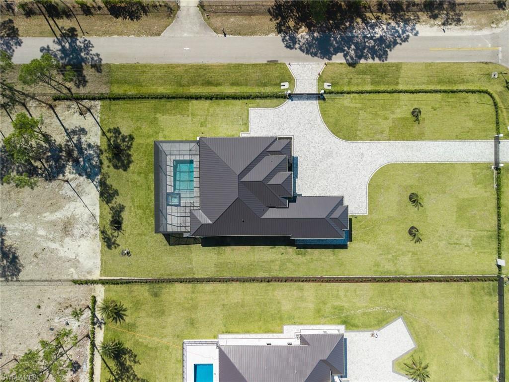 Experience the perfect blend of luxury, privacy, and convenience with this exceptional new construction estate situated on 2.6 acres of 100% upland corner lot in a prime Naples location. The expansive acreage offers the flexibility to build a guest house, workshop, barndominium, or additional structures, as well as ample space for horses or other farm animals. Creating endless possibilities to customize the property to fit your lifestyle. Offering 4,583 total square feet and 3,201 square feet under air, this residence showcases expansive open living areas, over 14ft ceilings, and high-end custom finishes throughout. This thoughtfully designed home features an open floor plan with four true master suites, each with its own private en-suite bathroom and spacious walk-in closet, plus a dedicated den/office and an additional half bath for guests. The custom kitchen is complemented by high-end appliances, premium finishes, and a walk-in pantry, oversized impact-resistant windows that fill the home with natural light, and a stunning custom TV feature wall that creates a striking modern living space. Step outside to your private resort-style outdoor oasis featuring a breathtaking pool with a 360 spillover spa, marble pool deck, and full screen enclosure, surrounded by beautifully designed professional landscaping. The property offers exceptional accessibility with three separate driveways, two electric gates, an expansive paver driveway, and an oversized three-car garage with modern paneled glass doors. The property is fenced and has a perimeter enhanced by Clusia hedges, for a future natural privacy barrier and a secure private estate setting. Built for durability, efficiency, and long-term comfort, the home features a metal roof, stem wall foundation, spray foam insulation, impact-resistant oversized windows, 10-foot doors, LED lighting, and low voltage accent lighting throughout. Dual water sources include city water for the home - a rare feature in this area - along with a private well dedicated to the irrigation system. Ideally located just 5 minutes from Interstate 75 and only 20 minutes from Naples world-class beaches and downtown, this property offers convenient access to top-rated schools, hospitals, shopping, and dining while still providing the space, privacy and tranquility of estate living. This rare opportunity delivers true luxury estate living with acreage, privacy, and city convenience - a unique offering in one of Naples most desirable locations!