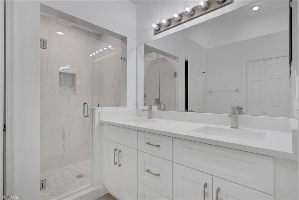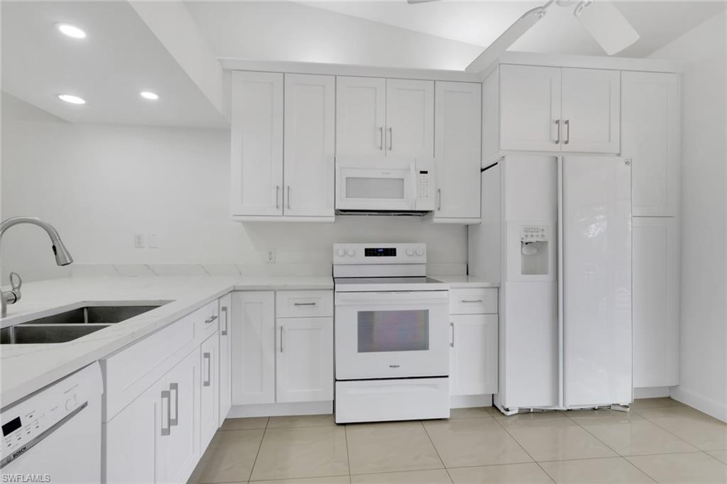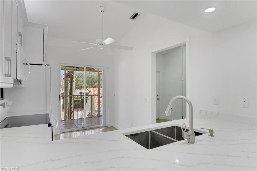 Discover this beautifully updated 3-bedroom, 2-bath end-unit condo in the highly sought-after Falling Waters community—where comfort, lifestyle, and location come together effortlessly. Known for its welcoming atmosphere and exceptional amenities, Falling Waters is one of Naples’ most desirable, amenity-rich neighborhoods—and this residence is just steps from the resort-style features that make it so special. Perfectly situated just minutes from 5th Avenue South, 3rd Street South, Waterside Shops, Mercato, and Naples’ world-class Gulf beaches, this home offers the ultimate blend of luxury and convenience. Step inside to a bright, open-concept living and dining area highlighted by soaring cathedral ceilings and new tile flooring throughout. The recently updated kitchen features quartz countertops, white shaker cabinetry with added storage beneath the breakfast bar, a large deep sink, generous prep space, and a cozy seating area with direct access to the expansive enclosed lanai spanning the front of the unit. Relax or entertain on the screened lanai while enjoying tranquil views of cascading waterfalls and lush tropical landscaping. A second oversized screened lanai at the entry—accessible from the kitchen—is the perfect spot for morning coffee or evening breezes. The thoughtfully designed layout includes three generously sized bedrooms and two fully updated bathrooms, along with an upgraded laundry room featuring new shaker cabinetry for additional storage. The spacious primary suite offers private lanai access and ample closet space, while the additional bedrooms provide flexibility for guests, a home office, or family. Additional highlights include a covered carport with private storage and ample guest parking nearby, all surrounded by peaceful, resort-like grounds with serene water features that make every day feel like a vacation. This move-in-ready condo is ideal as a full-time residence, seasonal retreat, or exceptional investment opportunity, with rental flexibility allowing up to 12 leases per year. Residents of Falling Waters enjoy unmatched amenities within walking distance, including a spectacular 11,000-square-foot resort-style saltwater pool with waterfalls that was recently enhanced by a $2.1 million renovation, a welcoming clubhouse with vibrant social activities and community events, clay tennis courts, bocce ball, shuffleboard, a putting green, and beautifully maintained sidewalks and paver walking paths throughout the lush tropical landscape. This is one of the best-priced 3-bedroom end-unit opportunities in the community and represents outstanding value in today’s Naples market. Don’t miss your chance to own in one of Naples’ most desirable communities—this one is priced to sell!