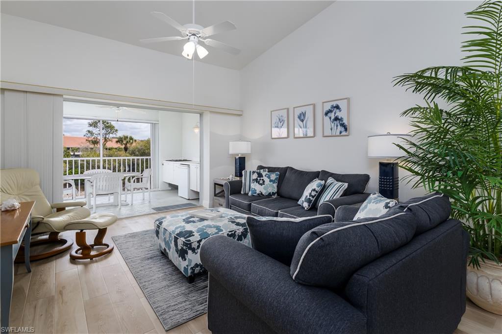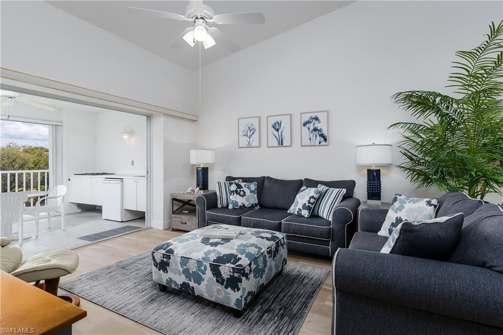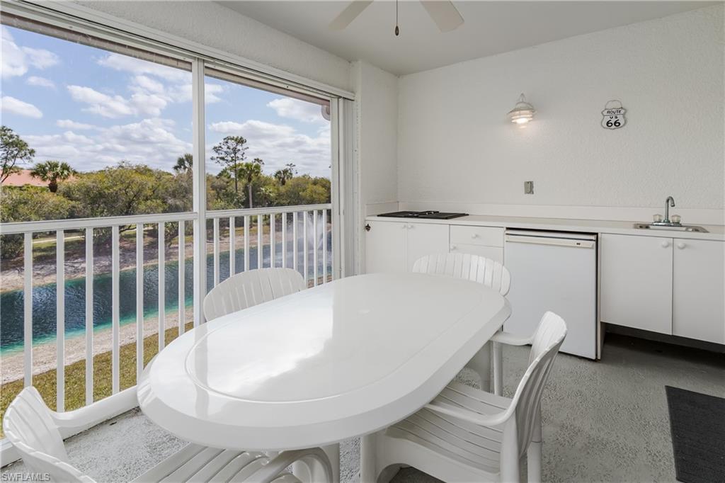 THIS VERY UNIQUE & TURNKEY READY CONDO IN THE MAGNIFICENT FALLING WATERS BEACH RESORT, OFFERS A VERY DESIRED LARGE SCREENED LANAI. VERY RARE & OPEN ON 2 SIDES FOR AN OUTSTANDING VIEW & BREEZE!! IN ADDITION, BECAUSE IT'S AN END UNIT, THE PRIMARY BEDROOM ALSO HAS 2 WINDOWS NOT COMMON IN MOST UNITS...BRIGHT AND SPACEOUS WITH VAULTED CEILINGS, OPEN FLOOR PLAN & UPDATED WOOD-LOOK VINYL FLOORING IN THE LIVING ROOM & DINING ROOM. OFFERED TURNKEY WITH JUST A FEW EXCEPTIONS, THIS BEAUTIFUL INVENTORY WILL ALLOW YOU TO START YOUR FLORIDA LIVING INSTANTLY. FAMOUS FOR IT'S RESORT STYLE LAZY RIVER POOL, 1 FLOAT AROUND & YOU WILL MAKE MANY NEW FRIENDS. VERY FRIENDLY & SOCIAL, THERE WILL BE MANY OPPORTUNITIES TO PLAY PICKELBALL, TENNIS, BOCCE & SHUFFLEBOARD...LOTS OF CLUB HOUSE FUNCTIONS FROM BINGO TO THEME PARTIES, SING ALONGS, CARDS & MORE. LOCATED A SHORT DISTANCE TO BOTH MARCO ISLAND & DOWNTOWN NAPLES FOR ALL SPECIAL EVENTS, SHOPPING, DINING & THE MOST BEAUTIFUL WHITE SAND BEACHES YOU HAVE EVER SEEN...PRICED RIGHT & SHOULD NOT LAST LONG!! WI-FI IS NOW INCLUDED IN THE CONDO FEES!! PARADISE IS WAITING!!
