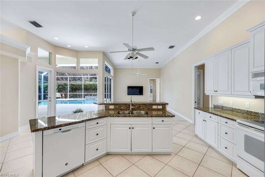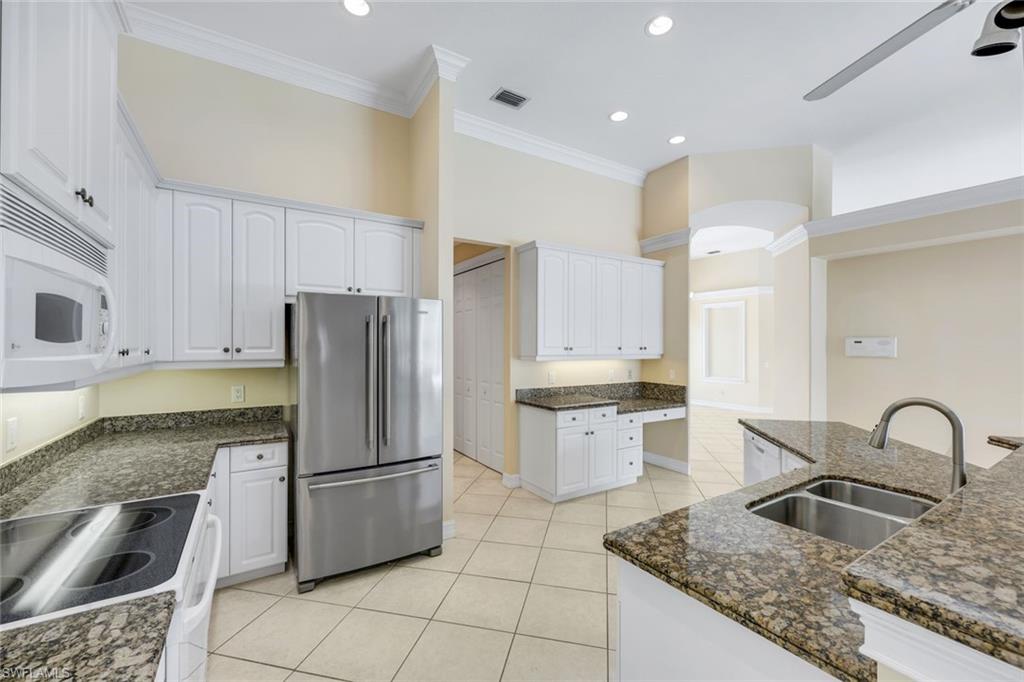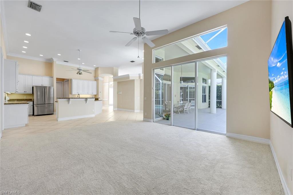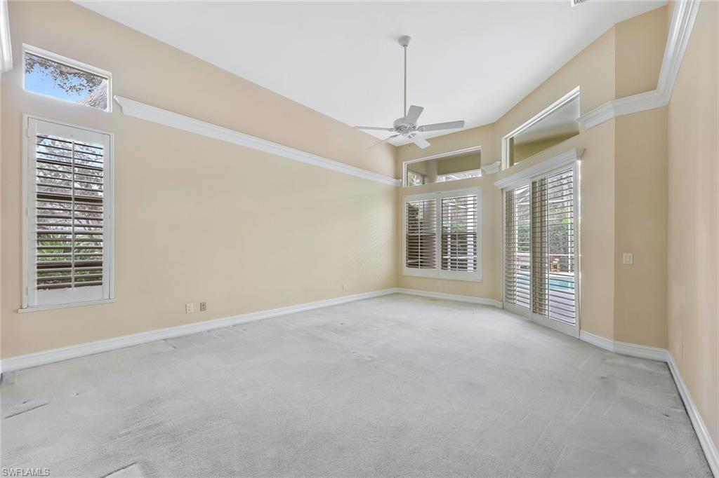 Located in Wilshire Lakes / Naples, Florida, this spacious 5-bedroom, 3-bathroom single family home offers over 3000 sq. ft. of luxurious living space under air! The home showcases 12-foot ceilings, elegant crown molding, and a generous 3-car garage for ample storage and parking. Equipped with premium appliances, including a refrigerator/freezer, dishwasher, microwave, range, and washer/dryer, ensuring effortless living at its finest. Step outside to a magnificent pool deck and lanai, perfect for entertaining or unwinding as you overlook a serene wooded preserve. Enjoy the exclusive amenities of two clubhouses, a geo-thermal heated pool, exercise room, tennis courts, and the peace of mind provided by the around-the-clock security gate entrance. Stay connected with included cable and internet. Wilshire Lakes is a warm family-friendly and pet-friendly community. Enjoy the convenience of being just 15 minutes from the pristine sands of Vanderbilt Beach and 8 minutes from shopping and dining. This home truly has it all for your ideal Florida lifestyle!