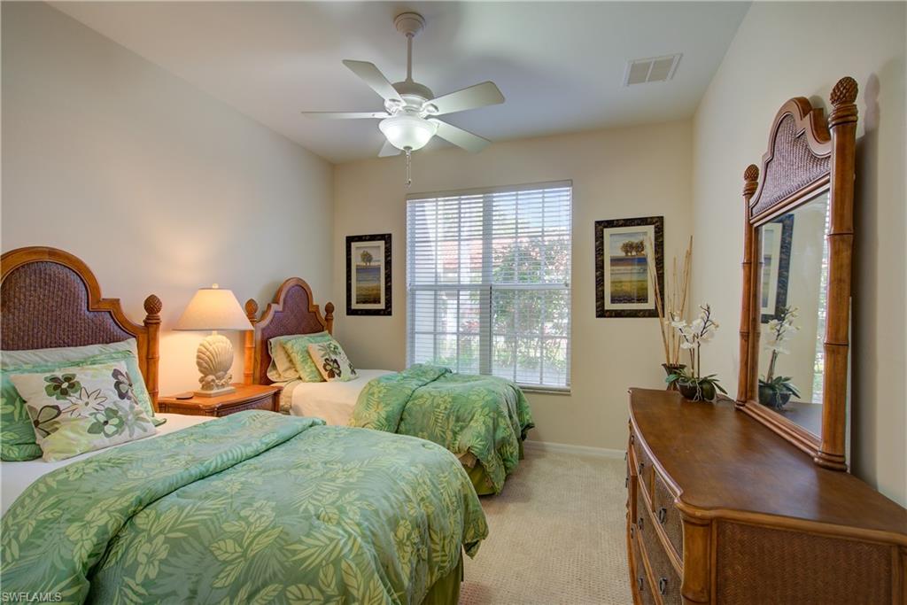 Best-Priced Unit in Vasari and Golf Included (No Waitlist)! Incredible opportunity to own in one of Southwest Florida’s premier bundled golf communities. With a recently renovated clubhouse and golf course, everything is ready for the new owners of this beautifully maintained, updated 2-bedroom, 2-bath residence. This first-floor home offers stunning lake and golf course views, preferred southern exposure, and added privacy with no cart paths behind you and all enjoyed from your screened lanai. Ideally located near the community pool, spa, and BBQ area, and close to the main entrance for everyday convenience. Offered turnkey, this residence is move-in ready and designed for easy Florida living. The updated kitchen features new countertops and crisp white cabinetry, creating a bright, inviting space that flows seamlessly into the main living areas. A split-bedroom floor plan provides maximum privacy for owners and guests, while the breakfast area off the kitchen is perfect for casual dining, family game nights, or a comfortable home office. Whether you’re looking for full-time living, a seasonal retreat, or an investment property, this home offers generous leasing options and exceptional value. A covered carport keeps your vehicle protected from the Florida sun, and the additional storage unit is ideal for bikes, beach chairs, and golf gear. Life at Vasari offers something for everyone, championship golf, an aqua driving range, putting greens, lighted tennis courts, bocce, a resort-style pool and spa, and a beautifully appointed clubhouse with dining and social events. The popular bar and grill is the perfect place to meet neighbors and enjoy casual dining after a round of golf. And yes, pickleball is coming soon! Located in Bonita Springs, you’re just minutes from Gulf beaches, shopping, dining, and entertainment, with easy access to Naples, Fort Myers, and nearby airports including Southwest Florida International Airport and Naples Airport. Move right in and start enjoying the Southwest Florida lifestyle.