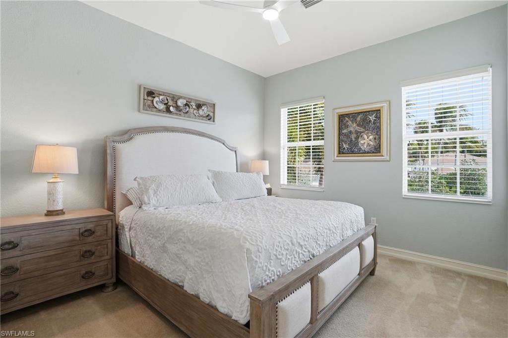 Perched on a premier corner residence in the desirable Bellavista neighborhood of Miromar Lakes Beach & Golf Club, this exceptional four-bedroom, three-bath condominium captures endless water and golf course views that stretch across the stunning 14th hole. With its elevated vantage point and corner positioning, the home is filled with natural light and offers panoramic scenery that truly defines luxury coastal living. The spacious open-concept floor plan is designed to showcase the breathtaking surroundings, with expansive sliding glass doors leading to a private lanai where you can enjoy sweeping views of the shimmering lake and manicured fairways. The living and dining areas flow seamlessly together, creating an inviting space for entertaining or relaxing while taking in the picturesque landscape. The kitchen offers generous cabinetry, ample counter space, and a functional layout perfect for everyday living and hosting guests. The primary suite serves as a tranquil retreat, featuring beautiful views and a spacious en-suite bath. Three additional bedrooms provide plenty of flexibility for family, guests, or a home office. Bellavista residents enjoy their own private pool and spa while being just a short distance from the award-winning beach club, waterfront dining, boating, golf, fitness center, and resort-style amenities that make Miromar Lakes one of the most celebrated communities in the country. A rare opportunity to own a corner residence with sweeping water and golf course views, offering the perfect blend of elegance, privacy, and the extraordinary Miromar Lakes lifestyle.