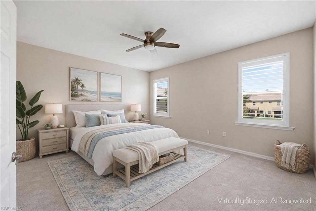 Discover contemporary townhome living in Cordera, a gated community in Bonita Springs. Built in 2016, this two-story residence offers three bedrooms, two-and-one-half baths and approximately 1,826 square feet of thoughtfully designed living space with lake and fountain views. The open-concept floor plan connects the kitchen, dining and living areas, creating a comfortable setting for everyday living and entertaining. The kitchen features granite countertops, 42-inch cabinetry and new stainless steel appliances, complemented by tile flooring throughout the main living areas and newer carpeting in the bedrooms. Sliding glass doors open to a paved lanai with northern exposure overlooking the community lake, providing a peaceful outdoor space to relax. Upstairs, the spacious primary suite includes a walk-in closet and an updated en-suite bath with dual sinks. Additional features include a second-floor laundry room, new water heater and an attached two-car garage with electric car charger. Residents of Cordera enjoy access to resort-inspired amenities, including a clubhouse, fitness center, pool and grilling area surrounded by landscaped grounds. The community’s location on Imperial Parkway provides convenient access to Coconut Point Mall, historic downtown Bonita Springs, Everglades Wonder Gardens and Bonita Springs Public Library. Nearby attractions include Florida Gulf Coast University, Hertz Arena, Southwest Florida International Airport and beaches along the Gulf of Mexico. Offering convenience and lifestyle appeal, this Bonita Springs townhome presents an opportunity to enjoy lake views, community amenities and proximity to the shopping, dining and coastal recreation that define Southwest Florida living.