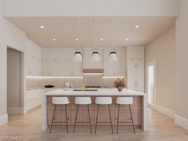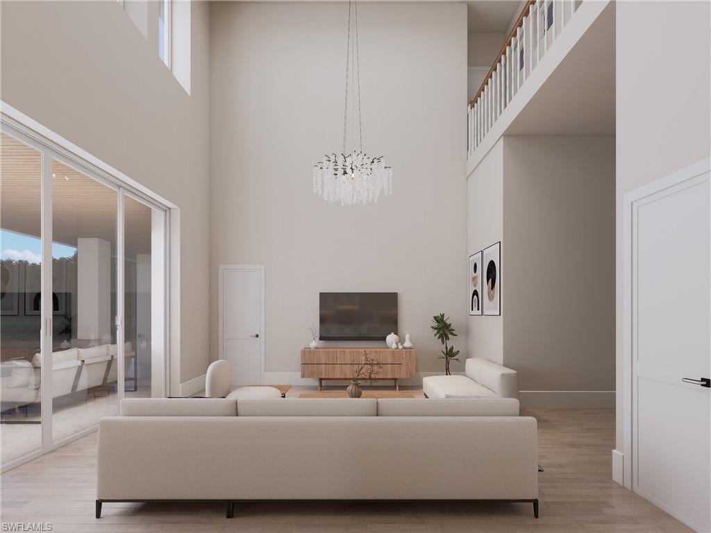 Introducing a brand-new direct Gulf access masterpiece, thoughtfully designed and ready for completion in May 2026! Designed with intention and bathed in coveted southern exposure, this custom-built Gulf-access home offers beautiful all-day natural light and a floor plan that truly lives well. The main level includes a luxurious primary suite, guest bedroom with adjacent full bath, and a dedicated den, while upstairs features a private second primary ensuite and an oversized flex room perfect for a media room, fitness space, or additional living area. Built to FEMA standards with no-bridge boating access, it delivers both peace of mind and waterfront freedom, complete with a private dock and lift — truly boater-ready. The great room impresses with 24-foot ceilings rising to a dramatic 35-foot cupola, complemented by white oak floors, natural stone selections, custom cabinetry, a built-in refrigerator, and top-tier appliances. Outdoors, enjoy a resort-style pool and spa, summer kitchen, and spacious two-car garage. Walk to the Naples Botanical Garden, explore the boardwalk to Sugden Regional Park, enjoy live music, breweries, wine venues, and coffee shops, and be just two miles from Downtown Naples in one of the area’s most exciting waterfront communities. Some photos contain virtual renderings.