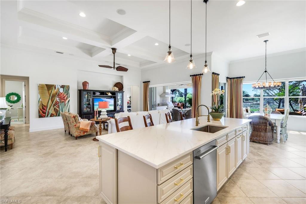 OPTIONAL IMMEDIATE GOLF MEMBERSHIP AVAILABLE. Welcome to this beautifully refreshed 3-bedroom + den, 3-bath home with a 3-car garage, offered TURNKEY and ready for immediate enjoyment. Freshly painted inside and out, this residence shines with modern upgrades and timeless style. The light-filled kitchen features brand-new quartz countertops, stainless steel appliances, and a seamless flow into the main living spaces — perfect for entertaining or everyday comfort. Other enhancements include plantation shutters throughout, primary bedroom custom closets, and crown molding plus so much more!!! Step outside to your private backyard oasis complete with a custom outdoor kitchen featuring a built-in grill, sink, and refrigerator — ideal for hosting under the Florida sky. Relax in the saltwater pool and spa while taking in the gorgeous sunset views that create the perfect backdrop for evening gatherings. Whether you’re searching for a full-time residence or seasonal retreat, this impeccably maintained home offers the ultimate in comfort, style, and indoor-outdoor living — all in one exceptional package. The Quarry is one of Naples’ most distinctive lakefront communities, built around the crystal-clear waters of Stone Lake. Residents enjoy a true resort lifestyle with a private beach club, resort-style pool, an indoor/outdoor restaurant and tiki bar perfect for everything from sunset cocktails to casual waterfront dining. An active, social atmosphere is anchored by a full-service wellness center, five Har-Tru tennis courts, five pickleball courts, and bocce, all supported by a full-time activity's director curating events, leagues, and gatherings year-round. Stone Lake sets The Quarry apart, offering rare opportunities to boat, jet ski, paddleboard, kayak, and fish right in your own backyard—something few Naples communities can claim. In addition, optional golf memberships are offered at the privately owned Quarry Golf Club. Designed by world-renowned architectural team of Dr. Michael Hurdzan and Dana Fry in 2007, this Par 72 championship golf course offers an exceptional golf experience with spectacular views. Whether you’re seeking relaxation, recreation, or a vibrant social calendar, The Quarry delivers a one-of-a-kind lakefront lifestyle that feels like a permanent vacation.