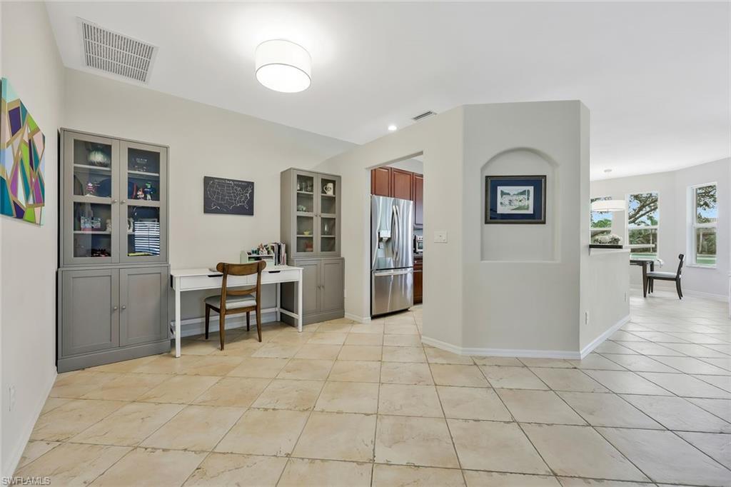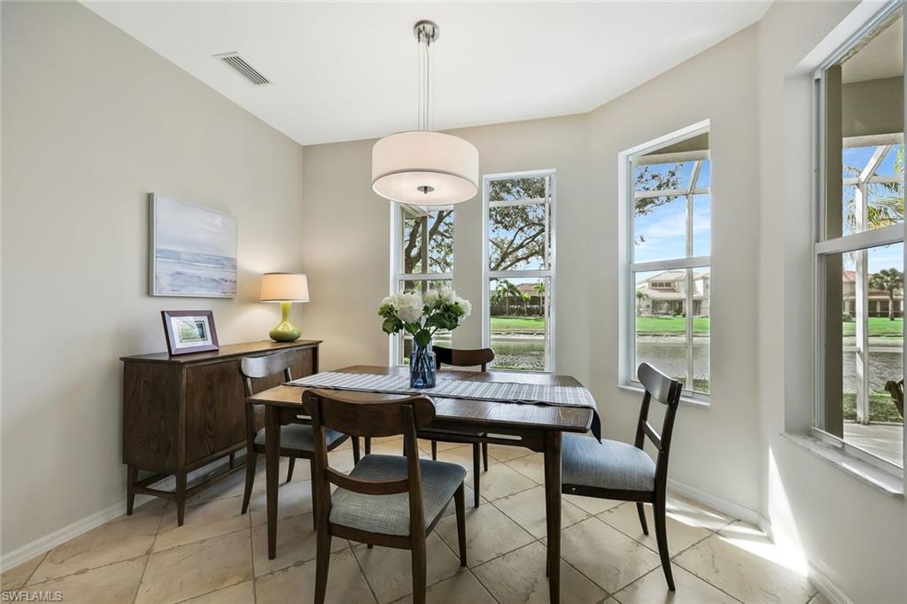 Welcome to this beautiful lakefront home in North Naples! This spacious residence features 3 bedrooms plus a private study, 2 full bathrooms, and a 2-car garage. Offering approximately 2,000 square feet of living space, the open floor plan is complimented by high volume ceilings, abundant natural light, and elegant plantation shutters. The well-appointed kitchen boasts rich wood cabinetry and stainless-steel appliances, flowing seamlessly into generous living and dining areas, perfect for entertaining. A cozy breakfast room is conveniently situated just off the kitchen for casual dining. Step outside to a large screened-in lanai where you can relax and enjoy tranquil lake views. The owner’s suite provides a private retreat with a large walk-in closet and an expansive bathroom featuring dual sinks and a separate shower and soaking tub. Additional highlights include storm shutters and a roof updated in 2018 for added peace of mind. Located in the gated community of Laurel Lakes, residents enjoy low HOA dues and access to exceptional amenities including a clubhouse, resort-style pool and spa, fitness room, children’s play area, basketball, tennis, and pickleball courts. CCPS shows (A) rated schools. The home is also situated just minutes from shopping, dining, and Naples’ world-renowned beaches. Experience a blend of comfort, convenience, and Florida lifestyle living!