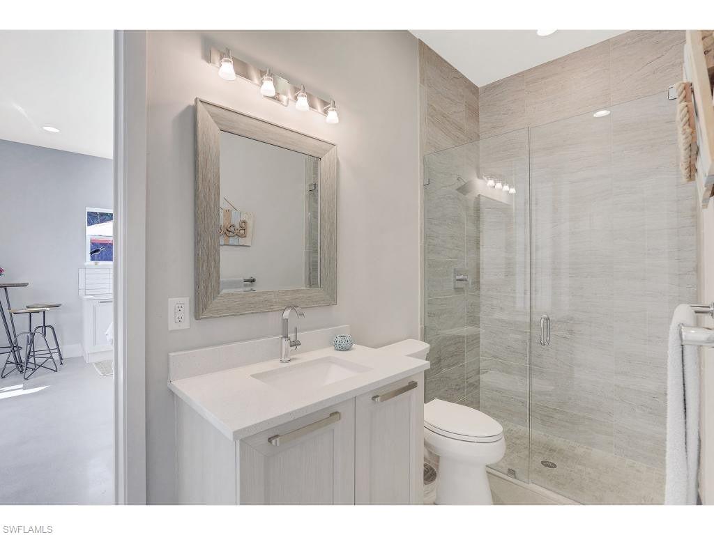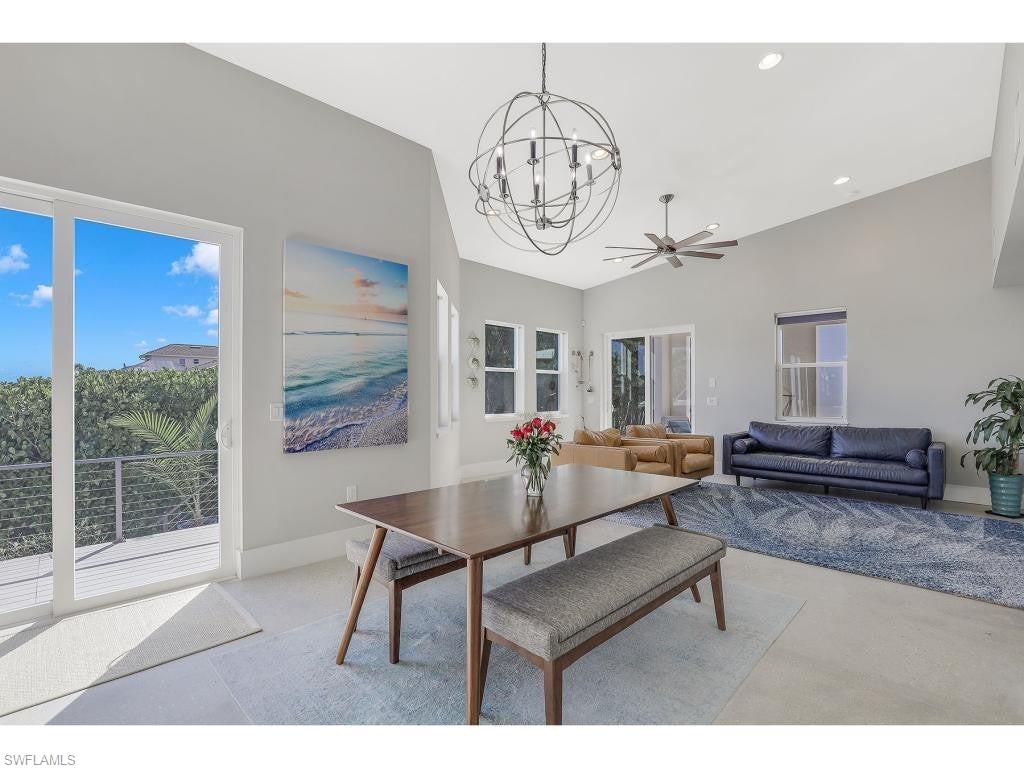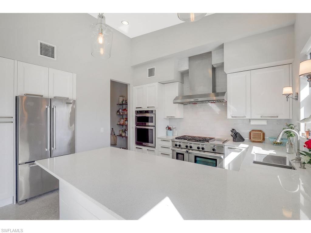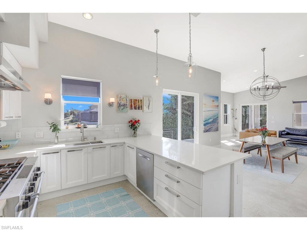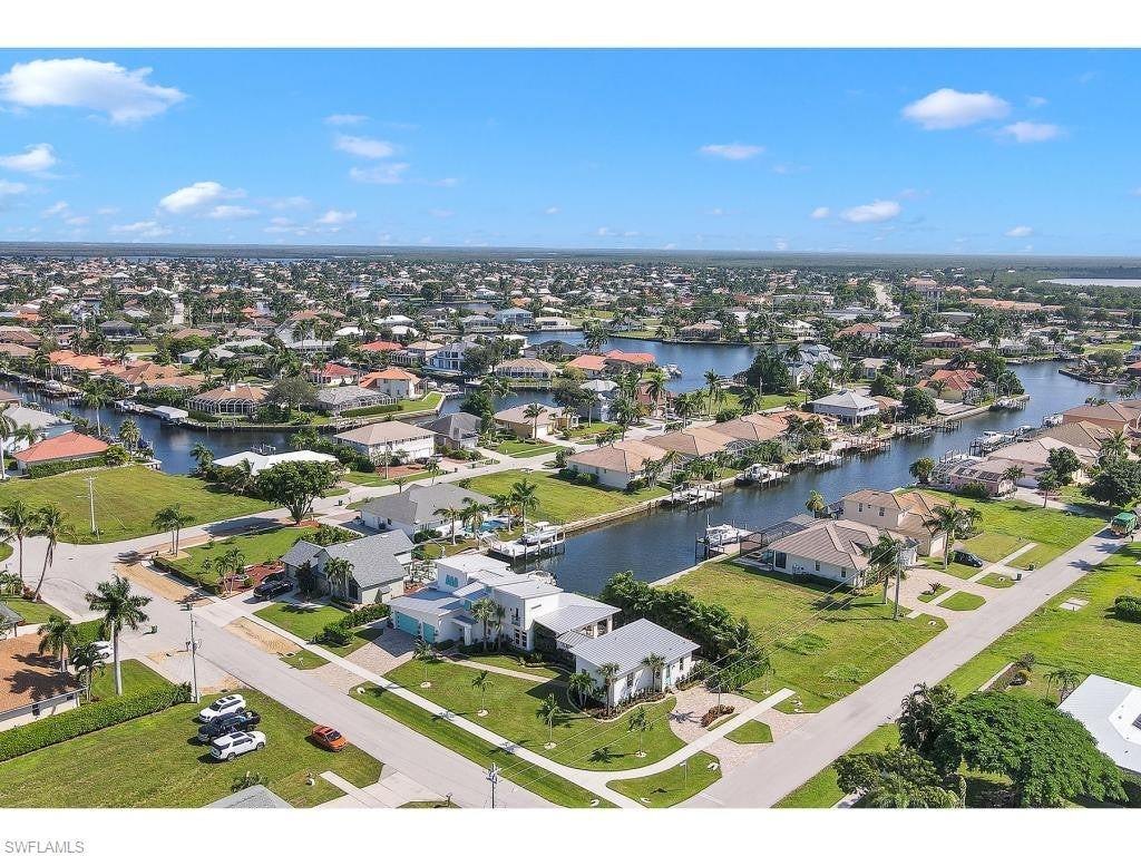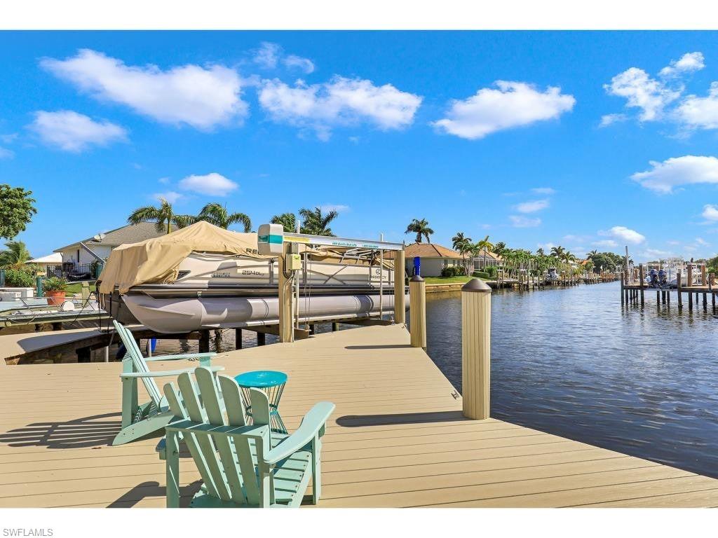 Exceptional Marco Island waterfront living with long, tranquil water views and breathtaking sunset skies, ideally positioned for effortless boating with only one bridge separating you from open Gulf waters. Recently constructed in a striking coastal contemporary design, this distinctive residence blends architectural elegance with a thoughtful layout designed for both luxurious living and exceptional entertaining. A dramatic light-filled foyer welcomes you inside, highlighted by soaring volume ceilings, custom shiplap accents, and a beautiful red oak staircase that sets the tone for the home’s refined interior. The chef-inspired main kitchen features Italian-crafted cabinetry and a 48-inch professional gas range, complemented by a wet bar—perfect for hosting gatherings large or small. Sophisticated flooring throughout, including polished concrete and wood-plank tile, adds both durability and modern coastal style. One of the property’s most unique features is the detached private casita, complete with its own driveway and private entrance, offering incredible flexibility as a guest retreat, mother-in-law suite, executive office, or private studio. The casita includes its own indoor kitchen, as well as a full outdoor kitchen and private bathroom with convenient pool bath access. Designed to fully embrace the waterfront setting, the outdoor living areas feature a resort-style heated saltwater pool positioned for optimal sunlight, expansive covered and open-air entertaining spaces, and beautifully designed tropical landscaping with river rock accents and elegant paver walkways. A dock with boat lift provides immediate access to the water, placing the Ten Thousand Islands—famous for world-class shelling, beaching, fishing, and boating—right at your doorstep. Additional highlights include impact-resistant windows and doors, a durable 24-gauge standing seam metal roof, two oversized driveways for ample parking, and a location just approximately two miles from both South Beach and Residents’ Beach, while remaining conveniently close to Mackle Park, the YMCA, shopping, and dining. A rare opportunity to enjoy exceptional waterfront living in one of Marco Island’s most desirable boating locations.