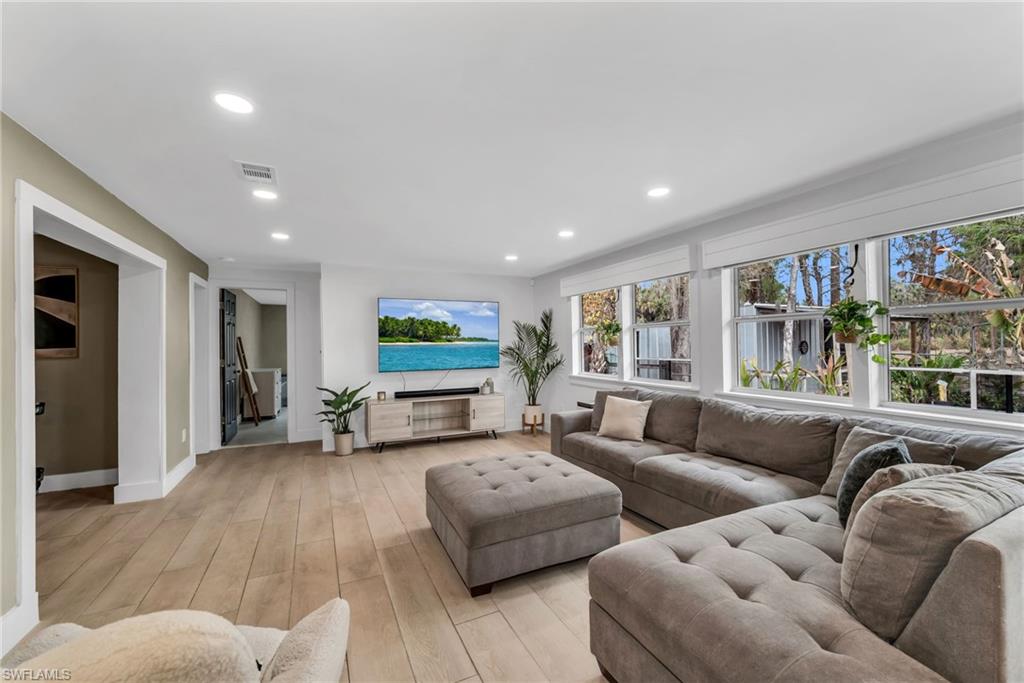 Rare opportunity in Golden Gate Estates (34117)! High and dry 2.27-acre fully fenced property just 5 minutes from Collier Blvd (951), offering privacy, space, and flexibility with no HOA restrictions. This charming farmhouse features an open-concept floor plan ideal for entertaining and everyday living. Interior upgrades include wide plank wood-look porcelain tile flooring, recessed lighting, fresh interior paint, updated electrical, and a bright, move-in-ready feel throughout. The fenced acreage is perfect for pets, chickens, horses, or recreational vehicles. A 1,013 sq ft barn/outbuilding provides excellent space for storage, equipment, hobby use. Major system upgrades include metal roof (2018), AC and ductwork (2018), whole-house well water filtration system (2024), water heater (2022), and reverse osmosis system at the kitchen sink. Enjoy peaceful estate living with quick access to shopping, dining, schools, and conveniences along Collier Blvd. If you’re searching for acreage in Naples with room to grow and long-term value, this property delivers.