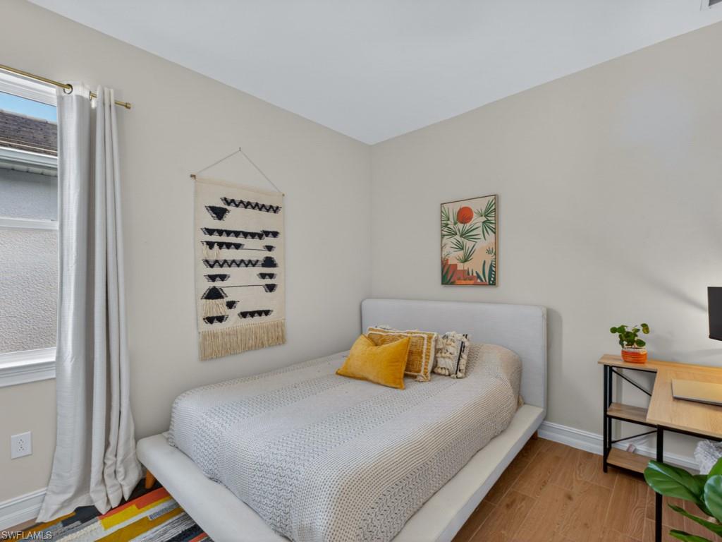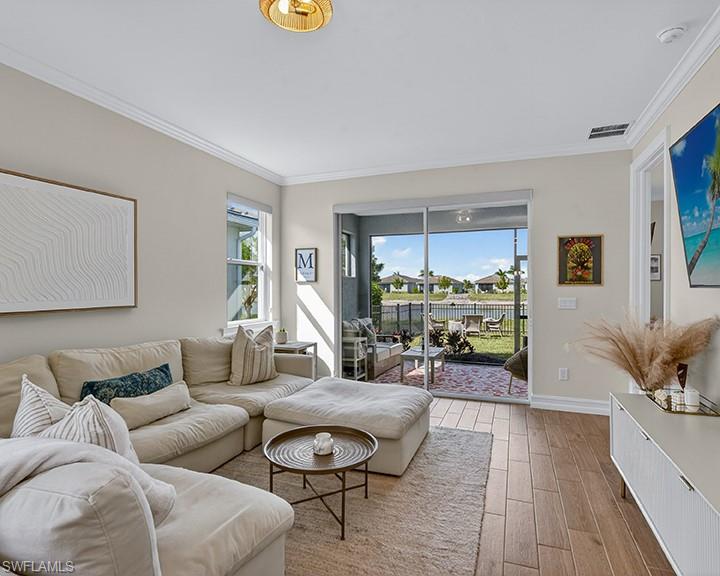 Located within the gated community of Seasons at Bonita, this 2022-built lakefront residence offers 1,614 square feet of thoughtfully designed living space with 3 bedrooms, 2 full baths, and a 2-car garage. Perfectly positioned on the lake, the home captures peaceful water views from the open-concept main living area and screened lanai, creating a serene backdrop for everyday living. The seamless floor plan connects the kitchen, dining, and living spaces into one inviting environment for entertaining or embracing the Southwest Florida lifestyle. The kitchen blends style and function, featuring KitchenAid stainless steel appliances, a generous center island, and an oversized walk-in pantry rarely found in homes of this size. A reverse osmosis system and smart home capability add modern convenience. The split-bedroom layout offers privacy for guests, while the primary suite provides peaceful lake views and a spacious bath retreat. Additional highlights include hurricane shutters, a fenced backyard, and a screened lanai perfect for morning coffee or sunset evenings by the water. Residents enjoy resort-style amenities including a beach-entry community pool and spa, state-of-the-art fitness center, pickleball with league play, bocce, tennis courts, walking trails, and a dog park. Conveniently located near I-75, Southwest Florida International Airport, dining, shopping, downtown Bonita, the future Midtown at Bonita and Gulf beaches this nearly new lakefront home offers the perfect blend of modern comfort and community living.