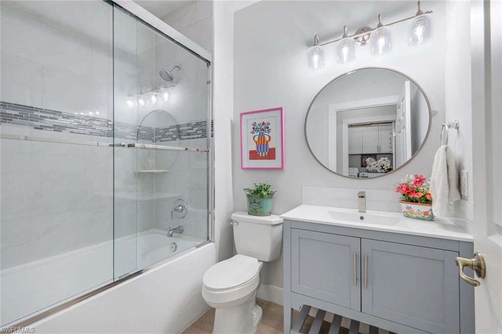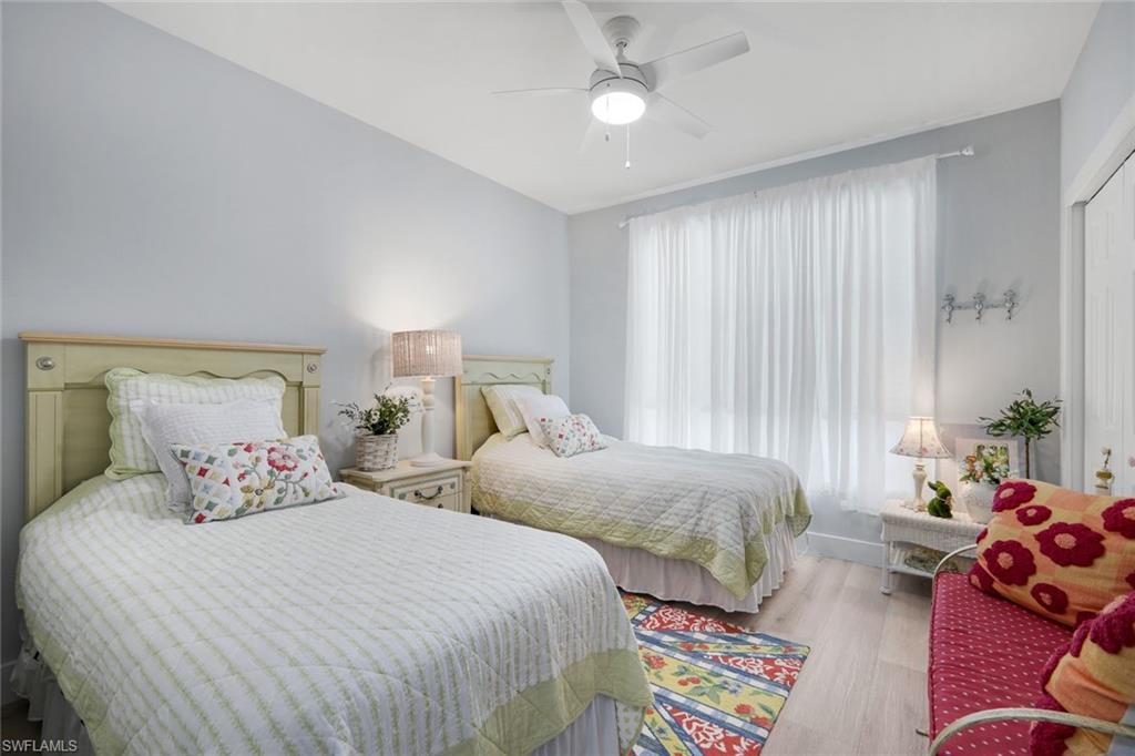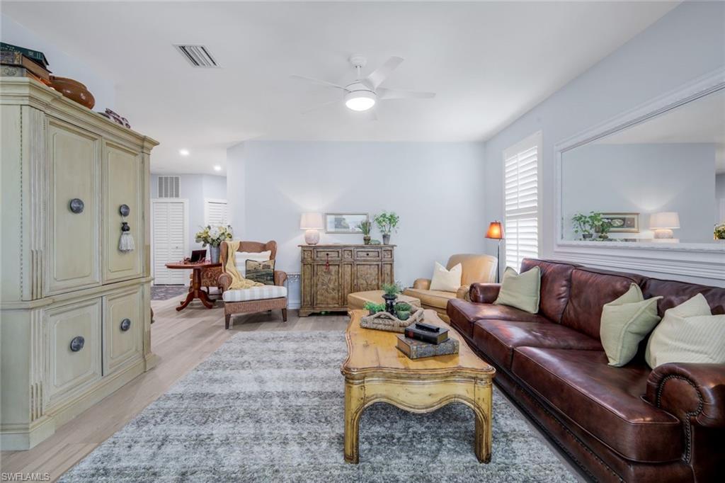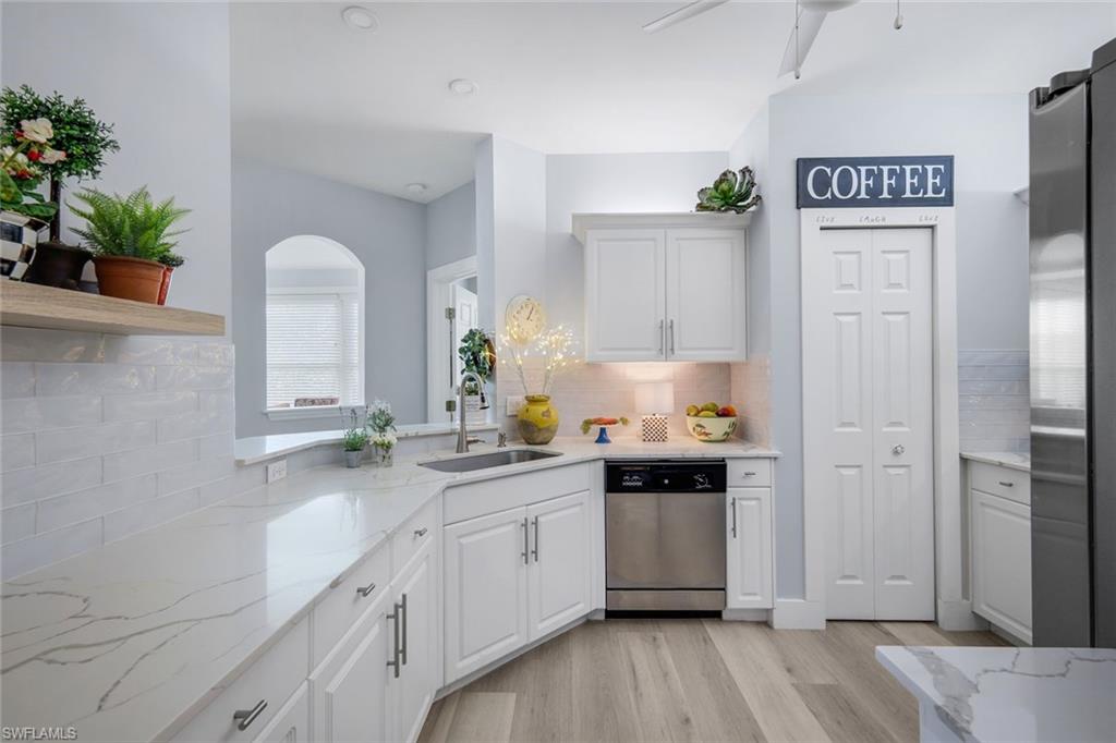 This darling (2004) 2-bedroom plus den, 2-bath FIRST-floor condo is nestled in the sought-after Charleston Square subdivision within beautiful, GATED Imperial Golf Estates. Professionally RENOVATED, this home boasts a beautifully UPDATED KITCHEN & BATHS, IMPACT windows, and a hurricane-resistant GARAGE-DOOR. The ROOF was replaced in 2022, and the home features 6-inch baseboards, plantation shutters, 6 ceiling fans, and luxurious quartz countertops. You will Enjoy 10-foot ceilings, updated LAMINATE FLOORING throughout, and a large master bedroom with pocket doors into beautiful master bath with a spacious walk-in closet. The convenient laundry room offers upper cabinets, and the kitchen includes a PANTRY. This home offers a versatile DEN with a door, making it ideal as a private third bedroom or a dedicated home office. In additional there is a sun filled side room with many window, ideal as a formal dining area, office, or even a bright art studio. Charleston Square is a charming enclave of only 37 homes, just steps from a community POOL and minutes from fantastic dining and the best Florida Beaches! Checkout the Virtual Tour. Don’t miss this gem in a prime location! This is Florida living at its “BEST”!