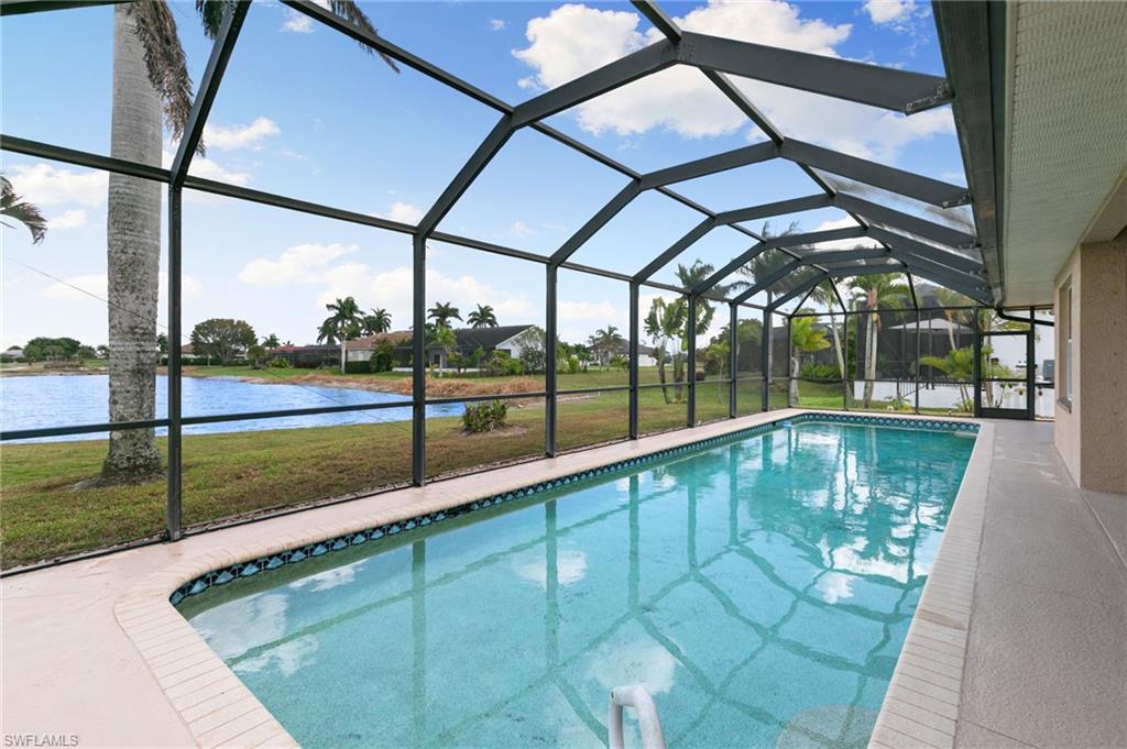 Your Sunny South Naples oasis awaits in this Large Pool Home! This 3 bed + den, 2 bath home offers a fantastic opportunity with a 2018 roof and 2020 water heater and washer. Featuring a large heated lap pool that overlooks a big beautiful lake and exciting golf course scenes. This gem of a property is being sold as-is with price in mind, perfect for buyers looking to customize in a desirable location with very affordable HOAs. The split floor plan was thoughtfully planned out working well for a full-time family, second home or wonderful rental potential. Offering expansive views from the entire home focused on the coveted lanai space bringing indoor and outdoor living seamlessly together. This property boasts great "bones" just waiting for you to bring your vision to this spacious home in the heart of desirable South Naples!