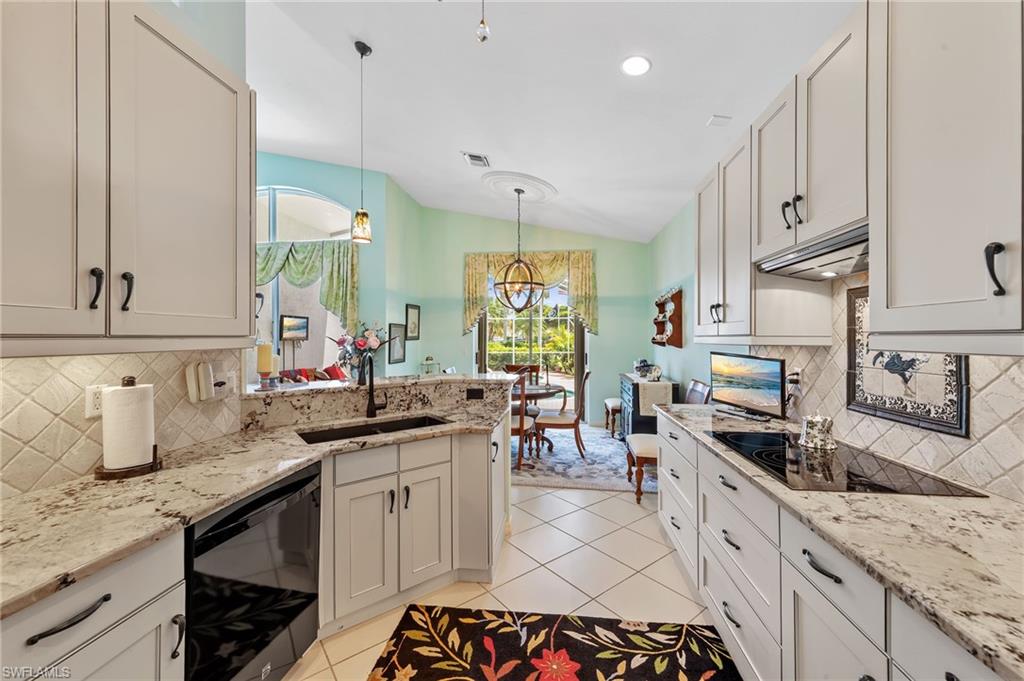 Welcome to Cascades, a vibrant community known for its lush landscaping and rich amenities. This popular Aruba floor plan offers 2 bedrooms, 2 baths, a den, and a private pool—perfect for both entertaining and everyday living. The great room design features vaulted ceilings and tile throughout the main living area, creating a bright and open feel. The kitchen is complete with granite counters, custom wood cabinetry, and a cozy breakfast room. The spacious master suite includes a walk-in closet and a beautifully appointed bath with dual sinks, a separate tub, and a walk-in shower. Faux paint on walls in master bedroom. The den is enhanced with built-in cabinetry, while the guest bedroom and full bath provide comfort for visitors. Step outside to the oversized screened lanai and enjoy your pristine pool beneath a vaulted cage in excellent condition. Living in Cascades means access to an impressive array of amenities. The state-of-the-art clubhouse boasts an oversized resort-style pool with an attached indoor swimming pool, a ballroom for entertainment and events, a professional billiards room, card rooms, library, and an arts & crafts studio complete with pottery kiln. Residents also enjoy a modern fitness center, dance studio, saunas, and a wide variety of clubs and social activities. Ideally located near shopping, dining, I-75, Florida Gulf Coast University, the airport, and some of Southwest Florida’s finest beaches, this home combines comfort, convenience, and an active lifestyle in one perfect package.