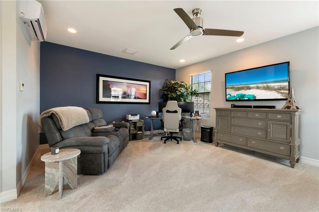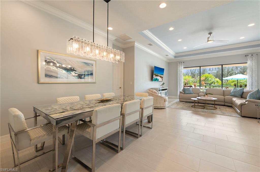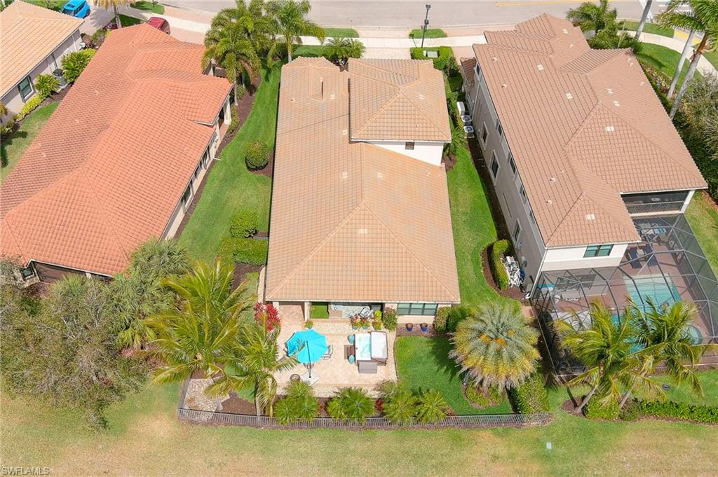 Welcome to the coveted Chandon Grande floor plan home by GL Homes, ideally located on model row in the prestigious gated community of Riverstone in North Naples. This exceptional two-story residence offers over 2,800 square feet of thoughtfully designed living space, highlighted by elegant finishes, a sophisticated open layout, and a plethora of high-end upgrades throughout.An added bonus of this gorgeous home is that it was one of the last homes built in the community in 2016 and sits on an oversized pie-shaped lot. Plus, it is only steps away from the amenity center, making it one of the most ideal spots in the community. X flood zone.Upon entering, you are welcomed by a dramatic foyer with soaring ceilings, upgraded lighting, brand new paint, and an abundance of natural light that flows seamlessly into the expansive great room.The beautifully appointed kitchen, with newer stainless steel appliances, is designed for both everyday living and entertaining, featuring premium cabinetry, granite countertops, a large center island, pantry, and generous dining space—perfect for every lifestyle. The luxurious first-floor owner’s suite serves as a private retreat with dual walk-in closets with custom built-ins and a spa-inspired bath offering dual vanities and a large frameless glass-enclosed shower. Additional guest accommodations provide comfort and flexibility, with one bedroom offering an en-suite bath for total privacy. The spacious upstairs loft offers endless possibilities for a media room, home office, or additional living area.One of the home’s most exceptional features is the rare oversized backyard, offering abundant space to create your own private outdoor oasis. The covered lanai provides the perfect setting for relaxing or entertaining, with extended patio space for plenty of outdoor enjoyment. There is ample room to design a custom pool, outdoor kitchen, and more, all while enjoying the beautiful landscape and ultimate privacy.There is a large saltwater hot tub that conveys with the property, perfect for relaxing outside and enjoying the peaceful surroundings after a day on the courts, the course, or a long day at the office.Throughout the home, discerning buyers will appreciate the extensive upgrades, including upgraded flooring, designer lighting, refined architectural details, new HVAC systems, a Tesla charging option, and elevated finishes that enhance the home’s timeless elegance.Residents of Riverstone enjoy an unparalleled lifestyle with resort-style amenities including a grand clubhouse, resort and lap pools, tennis and pickleball courts, a state-of-the-art fitness center, indoor sports court, playground, and a full social calendar. Riverstone is a financially strong community with a low fee of $505 per month for a wide range of services and amenities. Ideally located near world-class dining, shopping, top-rated schools, and the beautiful Gulf beaches, this home offers the perfect combination of luxury, space, and convenience.