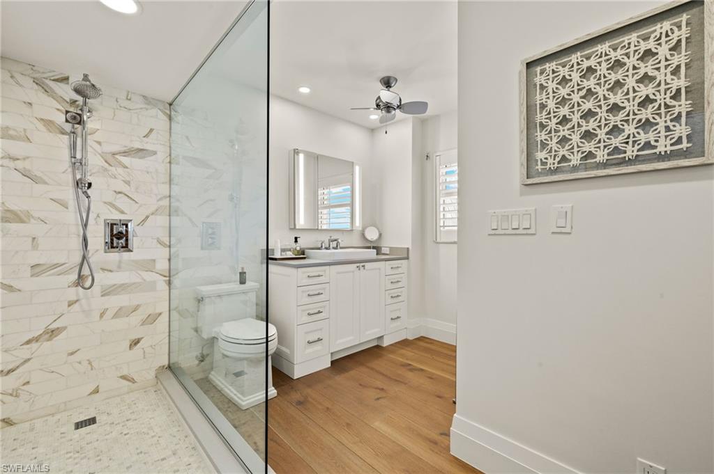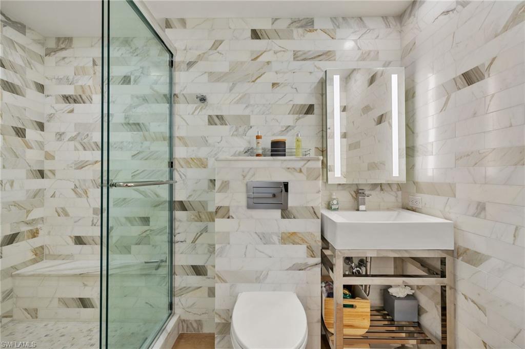 Wake up to breathtaking sunrises and enjoy a toast while watching spectacular sunsets over the Gulf, followed by the sparkling lights of Naples at night. This exceptional penthouse offers 3 bedrooms, 3.5 bathrooms, and over 2,800 square feet of casually elegant living space that has been thoughtfully redesigned for today’s modern lifestyle. This fully custom renovation was completed by the renowned Borelli Construction of Naples. A welcoming foyer opens to a stunning open-concept living space designed to capture expansive Gulf and bay views. The home features gorgeous light oak wide-plank hardwood floors imported from Italy, reclaimed barnwood columns and doors, and beautifully curated finishes throughout. The spacious living and dining areas include a stylish wet bar, perfect for entertaining. The true chef’s eat-in kitchen features custom shaker cabinetry, Sub-Zero refrigerator, Sub-Zero column wine refrigerator, ice maker, Bosch cooktop, oven and dishwasher, honed quartz countertops, and a generous breakfast bar. The luxurious primary suite is a private retreat with sweeping Gulf views and direct access to the lanai. It features a walk-in closet with custom built-ins and a spa-like bathroom with an oversized walk-in shower, dual vanities, and serene Gulf views. The desirable split floor plan places the two guest suites on the opposite side of the residence, each offering spacious bedrooms, walk-in closets, and en-suite bathrooms. Additional highlights include two brand-new air conditioning systems, a full-size laundry room with abundant storage, and a chic powder room with reclaimed wood double doors. The large enclosed lanai provides the perfect setting to enjoy morning coffee while gazing at the Gulf or evening cocktails at sunset. The residence also includes an oversized one-car carport and additional storage. Residents enjoy a beautifully redesigned lobby with a full-time desk receptionist and outstanding amenities, including a sunset deck overlooking the beach and Gulf, a club room ideal for entertaining, two built-in outdoor kitchens with Viking grills, a fitness center, pool, and convenient bike and gear storage. No expense was spared in this exceptional custom renovation, showcasing meticulous attention to detail and the highest quality materials and craftsmanship. Ideally located with easy access to Venetian Village, Waterside Shops, and downtown Naples—renowned worldwide for its fine dining, shopping, and vibrant coastal lifestyle.