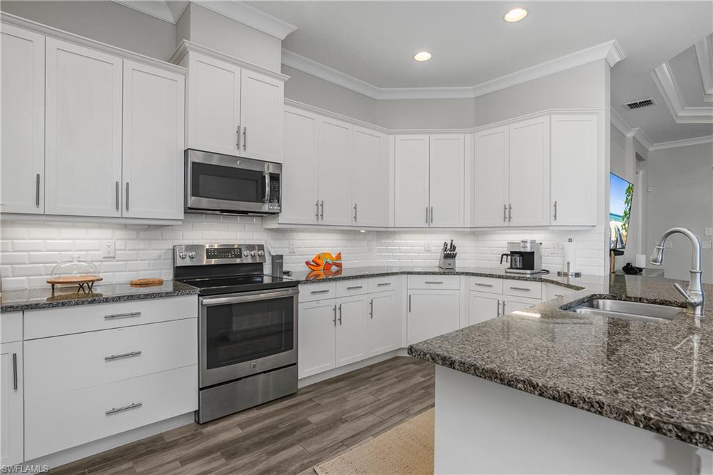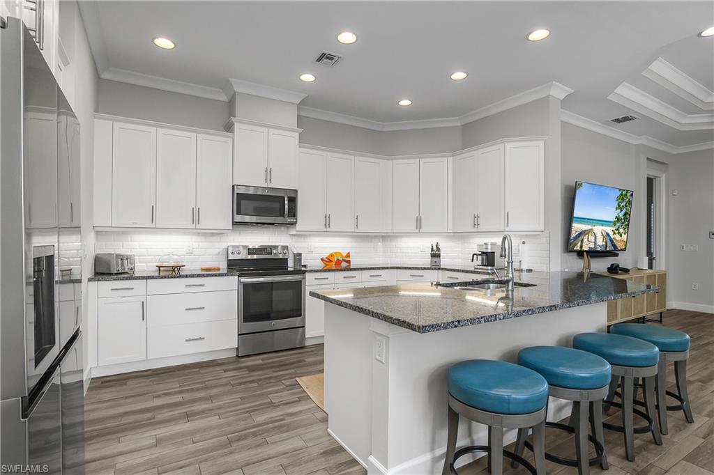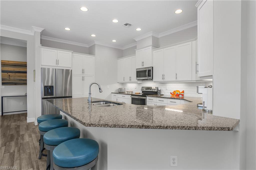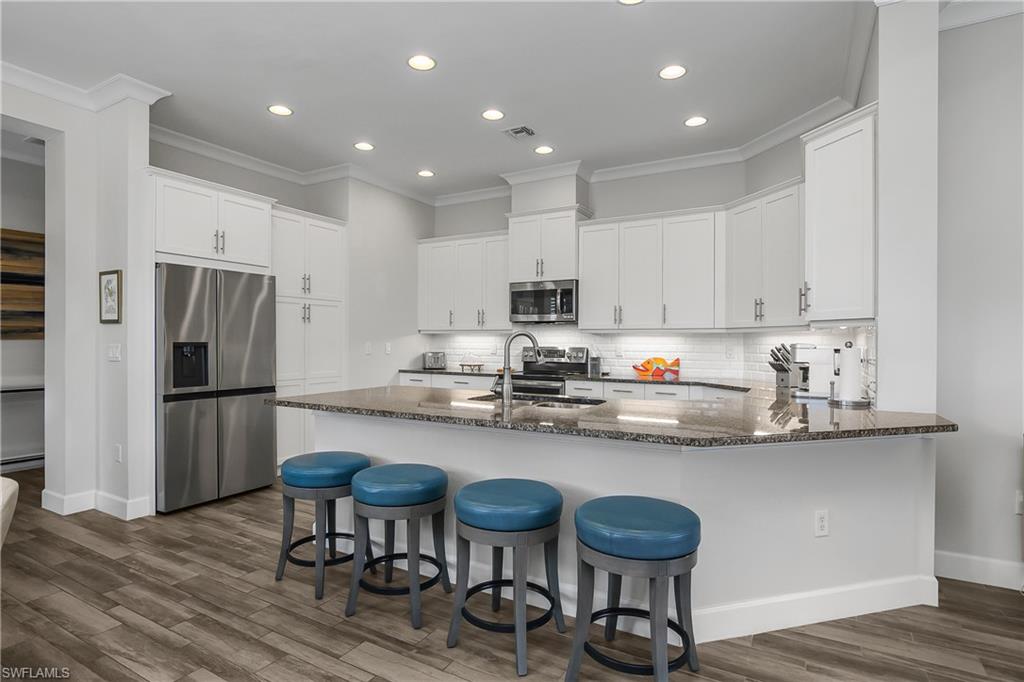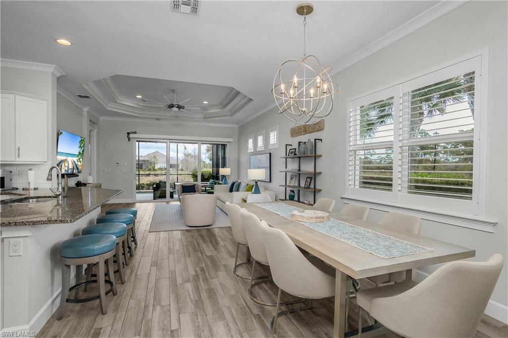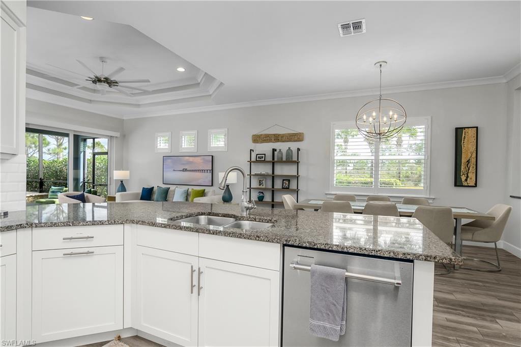 Pool and Spa overlooking beautiful water views with the added benefit having no neighbors on one side. Mimosa floor plan features tile flooring, white kitchen cabinets, quartz counter tops, Plantation Shutters, Crown molding accented with attractive fixtures and fans. Newer AC, water softening system. Nicely Furnished and ready to go. The perfect 'lock and leave' Florida home in one of the nicest communities in all of Naples. The Isles is situated on 2400 acres with much of it dedicated to Natural Habitats. Residents enjoy Luxury Amenities at the Isles Club which was modeled after the original Naples Beach Hotel of the late 1800's! The Overlook Bar and Grill is located on the water's edge. Pickleball and tennis and bocce ball courts, Kayaks and Paddle boards are provided. There is a lap and community pool and spa, sauna, modern full size gym, yoga and more! ICP is ideally located less than 5 miles from downtown 5th Ave and the beaches, combined with Low HOA fees make this one of the premiere locations in all of Naples.