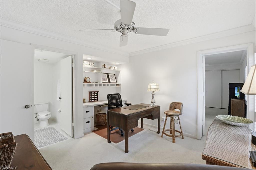 This truly ONE-OF-A-KIND and UNIQUELY DESIGNED condominium in the Forest Lakes Community offers an opportunity to own a rare, versatile, and spacious residence that is far from the typical condo layout. With 3 bedrooms, a den, and 3 full baths, and 1766 square feet - the thoughtfully designed floor plan includes two separate bedroom suites plus an additional oversized bedroom, creating REMARKABLE FLEXIBILITY for guests, workspace, or extended living arrangements. Located on the TOP FLOOR with CONVENIENT ELEVATOR ACCESS, the residence opens to a bright living area with SWEEPING GOLF COURSE VIEWS that bring the outdoors in. The UPDATED KITCHEN features white raised-panel cabinetry, granite countertops, a pantry, and an elegant tray ceiling, creating a welcoming and functional space for everyday living. Unique features include TWO PRIVATE ENTRANCES to the unit, two separate washers/dryers providing exceptional convenience, PLANTATION SHUTTERS, updated windows, and EXTENSIVE STORAGE with NUMEROUS CLOSETS THROUGHOUT—including oversized closets in both bedroom suites. The home is offered TURNKEY FURNISHED, making it easy to begin enjoying the Naples lifestyle right away. Forest Lakes offers a variety of amenities including THREE COMMUNITY POOLS, a clubhouse with social activities, tennis courts, a car wash area, and more...Quail Run Golf Club surrounds the community, where membership is optional if desired, and pay-to-play opportunities are available. This central Naples location places you just a few minute drive from Gulf beaches, shopping, dining, boating, fishing, and so much more!!!! Buyer to verify all information.
