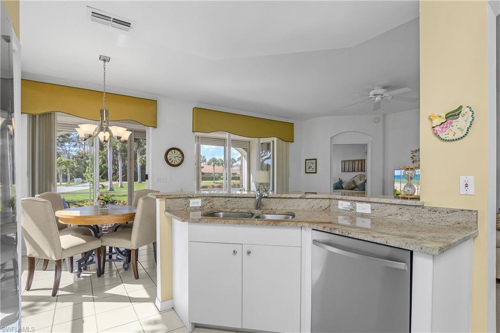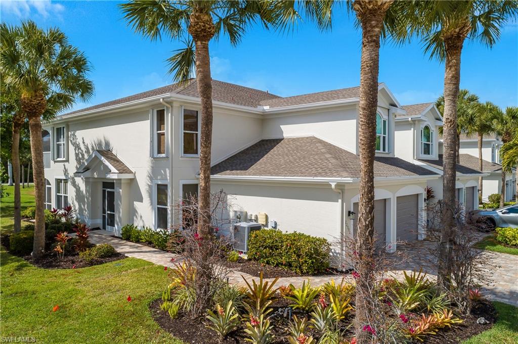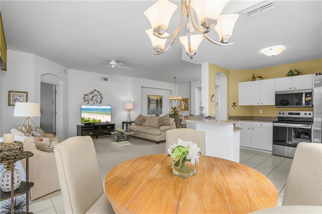 This beautifully appointed first-floor condo is absolutely stunning! Highly desirable corner-unit features high ceilings, an open layout and wide hallways! The condo fee is inclusive of so much, including water, internet and cable! Imagine relaxing in the recently re-screened lanai overlooking expansive water views, with a cold drink in hand. The views and abundant natural light continue on to the spacious living room, kitchen, and primary bedroom with large windows and sliding glass doors. Recent updates include a new A/C unit in 2025, rescreened lanai in 2025, all-new, never-used stainless steel kitchen appliances in 2026, newer roof and freshly painted building exterior. Also features updated granite countertops in kitchen & bath, and light fixtures. The remote hurricane shutters in the Lanai allow you to close up with a push of a button! Marsh Landing is conveniently located near the Coconut Point Mall, restaurants, shopping and is only 20 minutes from RSW Airport and beautiful gulf beaches. Marsh Landing has wonderful amenities including pickleball, tennis, basketball, fitness room, community pool, spa and clubhouse with many social activities!