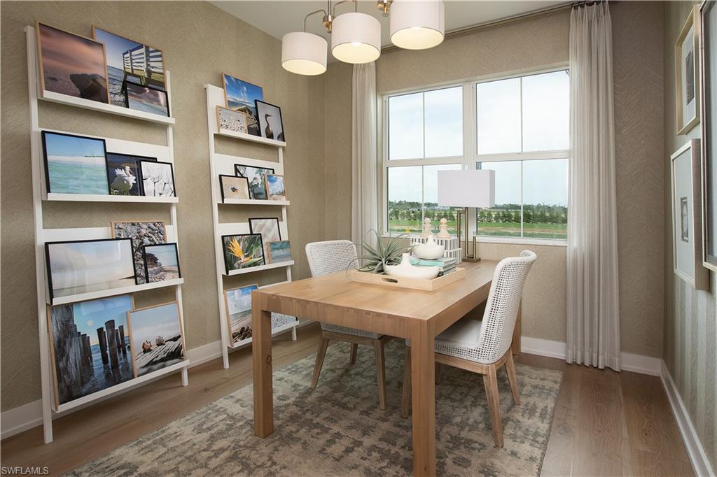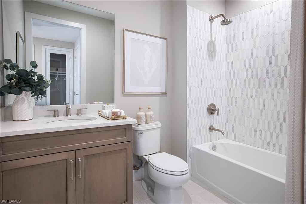 Last chance to own the highly sought-after Khaya floorplan in Seven Shores gated community. This beautifully designed paired villa offers the perfect blend of modern luxury, thoughtful design, and low-maintenance living. Situated on an oversized homesite with desirable southwest exposure, the home features a private covered lanai overlooking a spacious backyard with plenty of room to expand and create your own outdoor oasis—perfect for enjoying endless sunshine in south Naples. Inside, the gourmet kitchen showcases a luxe granite center island with a waterfall edge, stacked upper cabinetry providing abundant storage, and a premium JennAir appliance package with a natural gas cooktop for elevated cooking experiences. Natural light pours throughout the open-concept living space while beautiful tile flooring flows seamlessly through the home for a clean and sophisticated look. Guest bedrooms and bath provide a comfortable and private retreat for visiting family and friends. The primary bedroom suite serves as a peaceful sanctuary, featuring elegant shower wall and floor tile, granite countertops, and a massive walk-in closet designed for both style and functionality. Built for peace of mind, the home includes impact-resistant glass windows and doors along with builder warranty coverage and modern building standards. Located just steps from the community’s premier amenity center, residents enjoy access to a stunning clubhouse, resort-style pool, sports courts, fitness center, putting green, and a dedicated lifestyle director who curates events and activities for a vibrant and active community experience. Ask your sales consultant about lowering monthly payments through our rate buydown program! Lot 18.