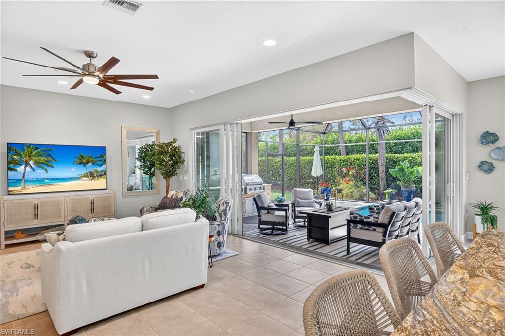 If you’ve been waiting for a gorgeous Sierra pool home — this is it! Move right into this impeccably maintained 3-bedroom, 2-bath pool home, showcasing pride of ownership and luxury upgrades throughout. The impressive foyer and grand double-tray ceiling hallway with designer wall sconces make a striking first impression, drawing your eye straight back to the stunning pool framed by professionally designed landscaping. The living, dining, and kitchen areas are flooded with natural light, thanks to zero-corner sliding glass doors in the great room and dining area, along with four large rear and side dining room windows, creating a bright, opening to the lanai and pool; providing additional outdoor space for year-round Florida lifestyle and entertaining. The refined, lush, professional landscaping features uplighting, statement planters outside the lanai (that convey), and beautiful colors all designed to enhance the poolside ambiance. Feast your eyes on the luxury outdoor culinary center, complete with a chef’s gas grill, companion burner, integrated refrigerator, and ample prep counter space you will love. Outdoor TV hookups make enjoying sports poolside a reality. Inside, the kitchen is a showstopper, featuring a new gorgeous granite countertop on the island that seats five, a large corner pantry, a designated coffee bar station, soft-close drawers, and abundant cabinet space. This home is thoughtfully appointed with high-end: window treatments, wood plantation shutters, and coordinated lighting. Additional upgrades include tile flooring throughout, custom dual workstations in the den/3rd bedroom, a well-appointed laundry room with custom cabinets and laundry tub, and a primary bathroom elevated with a frameless shower door and floor-to-ceiling tile. Valencia Bonita living is unparalleled: low HOA fees (Group bundled Xfinity cable and internet package just added to save residents $), no CDD, natural gas, and a 45,000 sq. ft. Clubhouse + Lifestyle Complex surrounded by 10 acres of world-class amenities. Enjoy tennis, pickleball, bocce, lap/resistance/grandkids and resort-style pools, fitness center, indoor/outdoor dining and bars, over 25 social clubs, firepits, cabanas, full service spa and nail salon, and even a pottery studio. With clubs for every interest – from Adventure and Stitchers’ to Bourbon and Wine Connoisseurs – you choose how active and social you want to be. Full time Lifestyle Director on premises. TOP NOTCH fitness program at reasonable cost with classes for all ability levels! This home is more than a residence; it's community offers a coveted lifestyle. Move in and live the ultimate Florida dream. Just 20 minutes to the beach and less than 1/2 hr to RSW airport! This rare find is guaranteed to make you want to call it home — don’t miss your chance to see it!