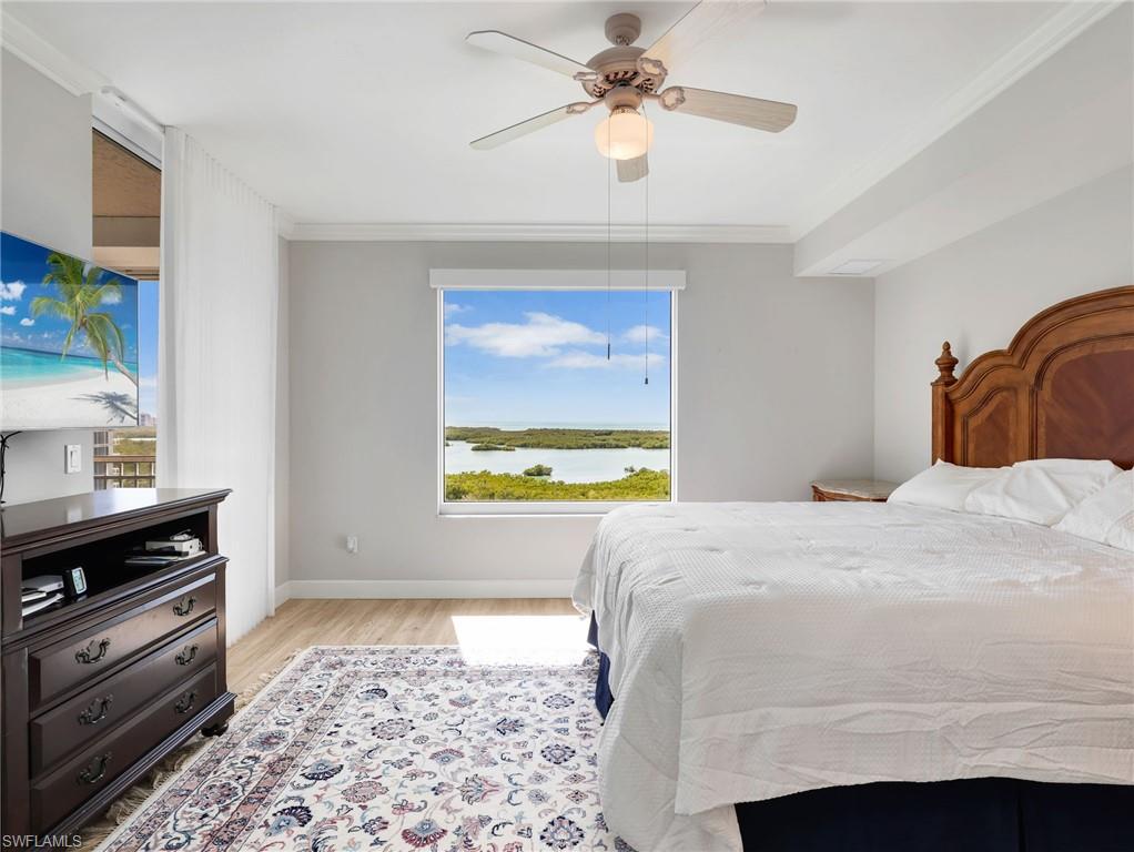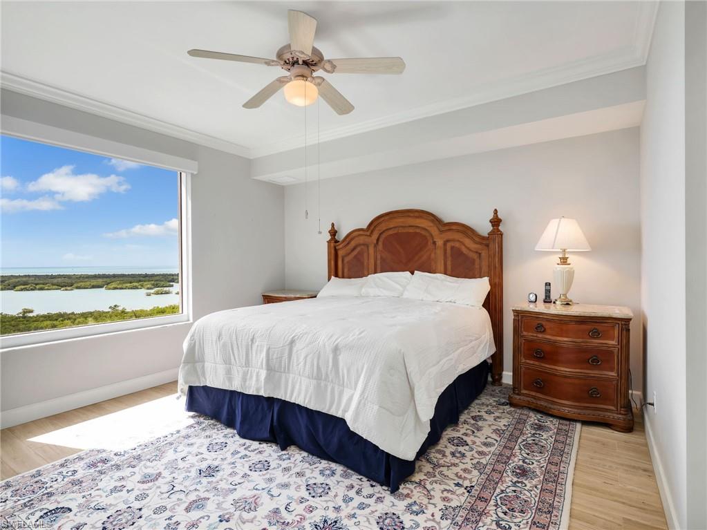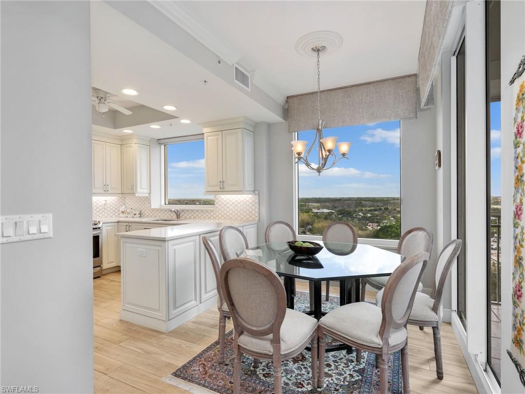 Perched on the 9th floor of Tower Pointe at Arbor Trace, this spacious 3-bedroom, 2.5-bath residence offers 2,030 square feet of living space with a desirable split-bedroom floor plan designed for comfort and privacy. Beautiful porcelain tile flooring throughout provides a clean, modern look that is both durable and low-maintenance. Enjoy abundant natural light and southwest exposure, offering warm afternoon sun and stunning gulf sunset skies from your private vantage point. The open living and dining areas flow seamlessly, creating an ideal setting for both everyday living and entertaining. The split layout places the guest bedrooms apart from the primary suite, allowing residents and visitors to enjoy their own space. Arbor Trace is a resident-owned, independent living community that offers exceptional amenities, including a resort-style heated pool, fitness center, tennis/pickleball, bocce courts, golf putting green, two libraries, special events, and gourmet dining at the clubhouse. Benefit from comprehensive support services such as 24-hour medical monitoring, transportation to medical appointments, shopping, and group outings. Arbor Trace is a vibrant 55+ community that offers the unique advantage of deeded condominium ownership with 100% equity and no financial or medical requirements, allowing you to rent, sell, or pass your home to your heirs. Enjoy peace of mind with an on-site assisted living if you need it.