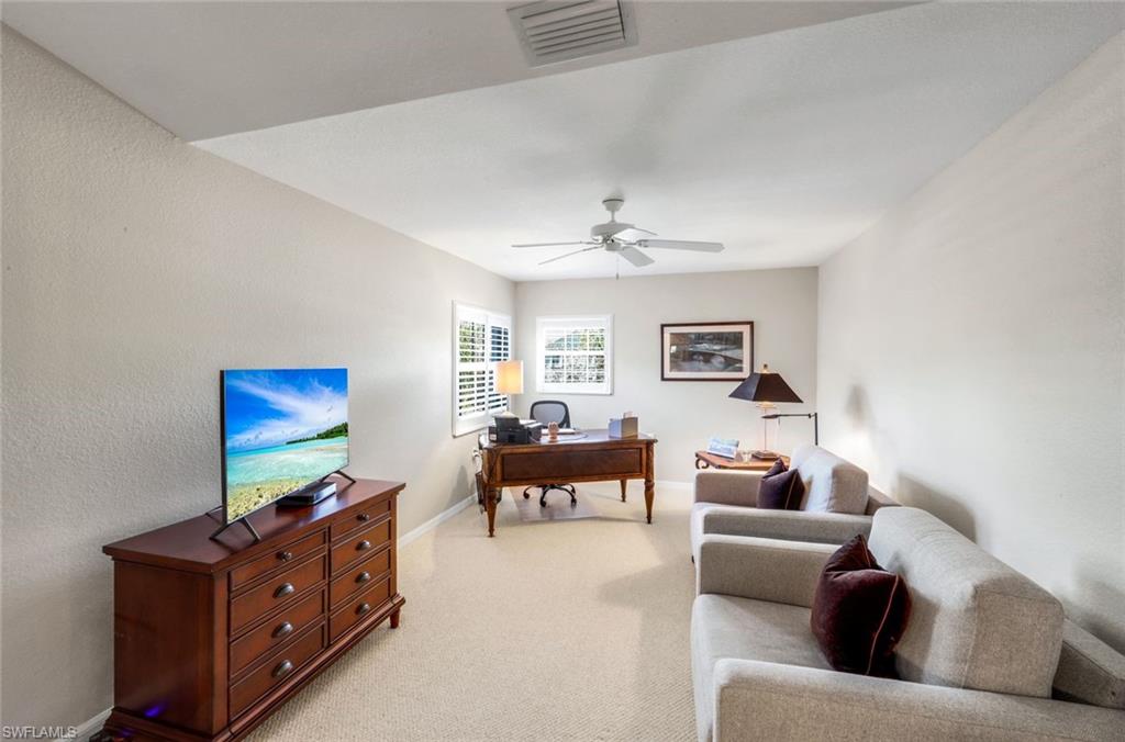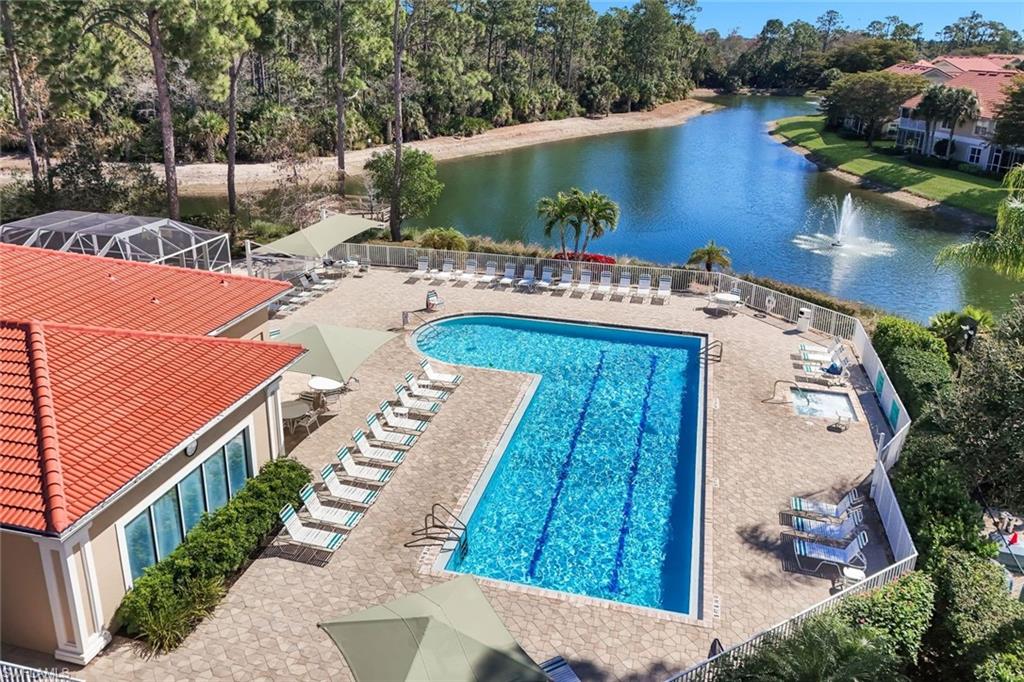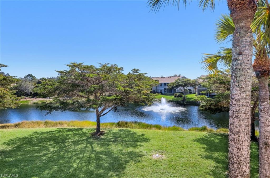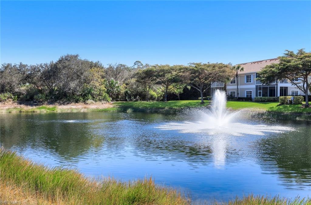 Welcome to your dream lakefront residence in the desirable gated community of Carlton Lakes. This 2nd floor condo offers some of the best lake and fountain views from one of the finest locations within the community. Enjoy vaulted ceilings, a spacious kitchen that open up to the living area making it great for entertaining. You have two outdoor lanai spaces to relax on, complete with electric hurricane shutters on the rear lanai for added peace of mind. The interior showcases freshly painted walls, elegant plantation shutters, and upgraded carpet in the bedrooms and den, complemented by top-of-the-line stainless steel appliances. Community amenities include bocce and tennis courts, a 60 ft lap pool, hot tub, fitness room, clubhouse, and tot lot. Situated on a serene cul-de-sac lot, this property offers proximity to Seed To Table with a leisurely walk and a short drive to Mercado and the pristine white sand beaches of Naples. Sold with a one year home warranty for the new buyer at closing.