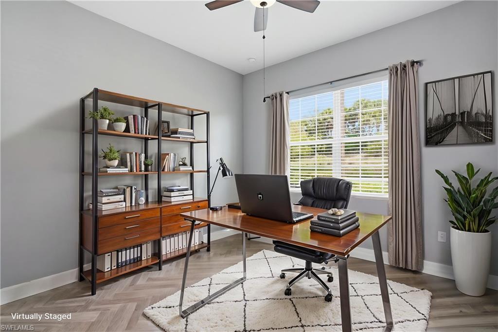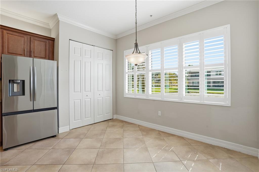 Welcome to this FIRST-FLOOR - END-UNIT carriage home in the amenity-rich community of Marbella Lakes, offering over 1,600 square feet of living space - with 3 bedrooms and 2 baths in a bright and functional open-concept design. With 9-foot ceilings and numerous windows, the residence feels spacious, and welcoming. The kitchen features a breakfast bar, raised-panel wood cabinetry, SS appliances, recessed lighting, granite countertops with complimenting backsplash, a LARGE PANTRY, and a comfortable layout that flows seamlessly into the main living and dining areas—ideal for everyday living or entertaining. A screened lanai adds outdoor living space where tranquil water views and natural surroundings create a peaceful setting to enjoy morning breakfast, or unwind at the end of the day. Additional features include a ONE-CAR ATTACHED GARAGE, paver driveway, private side entry, storm protection with shutters, and a dedicated laundry room for added convenience. Marbella Lakes offers a resort-inspired lifestyle with an 8,000-square-foot lifestyle clubhouse, community pool and spa, FITNESS CENTER, tennis courts, PICKLEBALL, indoor and outdoor BASKETBALL COURTS, billiards room, playground, and beautifully landscaped grounds set among scenic lakes. A splash pad is currently being redesigned, adding even more RECREATIONAL AMENITIES....Located in central Naples, this community provides convenient access to Gulf beaches, shopping, dining, boating, fishing, and many of the area’s most popular destinations, making this an exceptional opportunity to enjoy the Naples lifestyle. Buyer to verify all information.