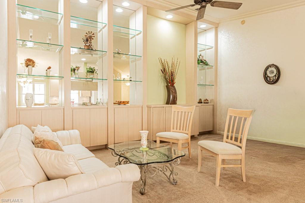 Charming attached villa available for immediate occupancy in the highly desirable, amenity-rich Village Walk community in Naples. This popular Capri model features two spacious bedrooms and two full bathrooms, offering a comfortable and functional layout. The open split-floor plan includes a bright living room with a built-in wall unit, a dedicated dining area, and a large kitchen equipped with white appliances. The extended lanai has been enclosed with glass and fully air-conditioned, creating additional year-round living space while still offering peaceful lake views. Built by DiVosta, the home features solid poured-concrete construction and sits in a quiet, private location within the community. Recent upgrades and highlights include: Enclosed, air-conditioned lanai, Air-conditioned garage, Separate electric box for a generator, Extended screened patio, Roof installed in 2019, Electric storm shutters. This exceptionally clean and well-maintained home is move-in ready. Village Walk Amenities: Residents enjoy a low-maintenance lifestyle with amenities included: Three heated community pools, Har-Tru tennis courts, Fitness center, On-site restaurant, Clubhouse, Pickleball, Lawn Bowling, Scenic walking and biking paths, 24-hour gated security. The community is known for its mature trees, scenic footbridges, and welcoming Town Center, which includes conveniences such as a salon and travel agency. With a motivated seller and a fantastic location just steps from the Town Center, this property presents an excellent opportunity in one of Naples’ most sought-after communities. Buyer to verify all information to their satisfaction.