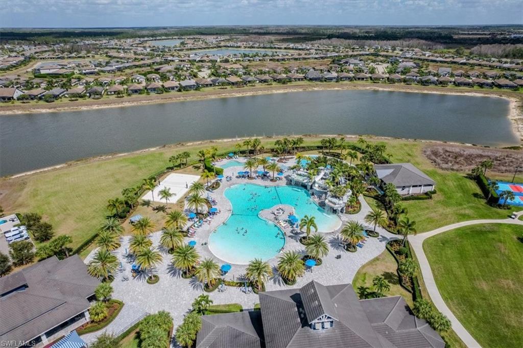 Rare opportunity to own a highly sought-after “Sunset” Estate Model on one of the BEST lots in The Place at Corkscrew. Perfectly positioned with coveted southern exposure and a spectacular long lake view, this home offers the ultimate Southwest Florida indoor-outdoor lifestyle. This popular 3 Bedroom + Den, 3 Full Bath residence with a 3-Car Garage and 2,650 sq. ft. of living space features an open great-room floor plan with soaring ceilings and large sliding glass doors that capture the stunning water views. The outdoor living area is where this home truly stands apart. Enjoy a custom resort-style pool and spa with elegant water bowl fountains, an oversized paver deck, and a panoramic picture-screen enclosure designed to maximize the sweeping lake views and Florida sunshine all day long. The spacious primary suite offers lanai access, dual walk-in closets, and a spa-inspired bath, while the split bedroom layout and private den provide ideal space for guests, a home office, or flex room. Located in the award-winning community of The Place at Corkscrew, residents enjoy world-class amenities including a resort-style pool with a 100-ft waterslide, restaurant and café, bourbon bar, fitness center, tennis, pickleball, bocce, dog park, and more. Premium lakefront homes with southern exposure and custom pools like this rarely become available — schedule your private showing today.