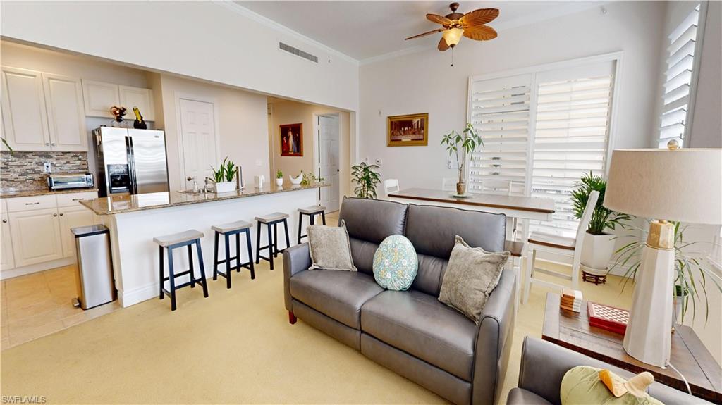 Residences at La Piazza, at the Heart of Ave Maria Florida, Find This Rarely Offered “Lucca/Bldg 5” Unit w/Detached Garage, Beautifully Appointed Luxury Condo, Open Town Center Views from Large Covered Walkout Private Lanai, 1674 Sq. Ft. of Interior Living Space, 3 Bedrooms, Plus Den, 3 Full Baths, 10’2” Ceilings, “Lucca” Only Bldg that Offers Detached Garage. Options Include; Impact Windows & Doors, Granite Tops, Stainless Steel Appliances, White Solid Wood Cabinets, Crown Molding, Separate Walk in Shower & Soaking Tub at Master Bath, Plantation Shutters, Quality Ceiling Fans & Light Fixtures Throughout, In Unit Laundry Rm, Newer HVAC Unit, Custom Paint Throughout. Enjoy all the Sights and Sounds of a Vibrant Town Center, or Close Your Impact Resistant Doors & Windows for a Quiet Experience. Short Walk to Residents Only Private Swimming Pool, Ave Maria University Campus, Banking, Shopping, Dining, Fitness Center, Etc. Town Amenities Include; Town Parks, Water Park, Fitness Center, Walking. Jogging, and Biking Paths, Activities Director. “Come Experience the Beauty that is Ave Maria”