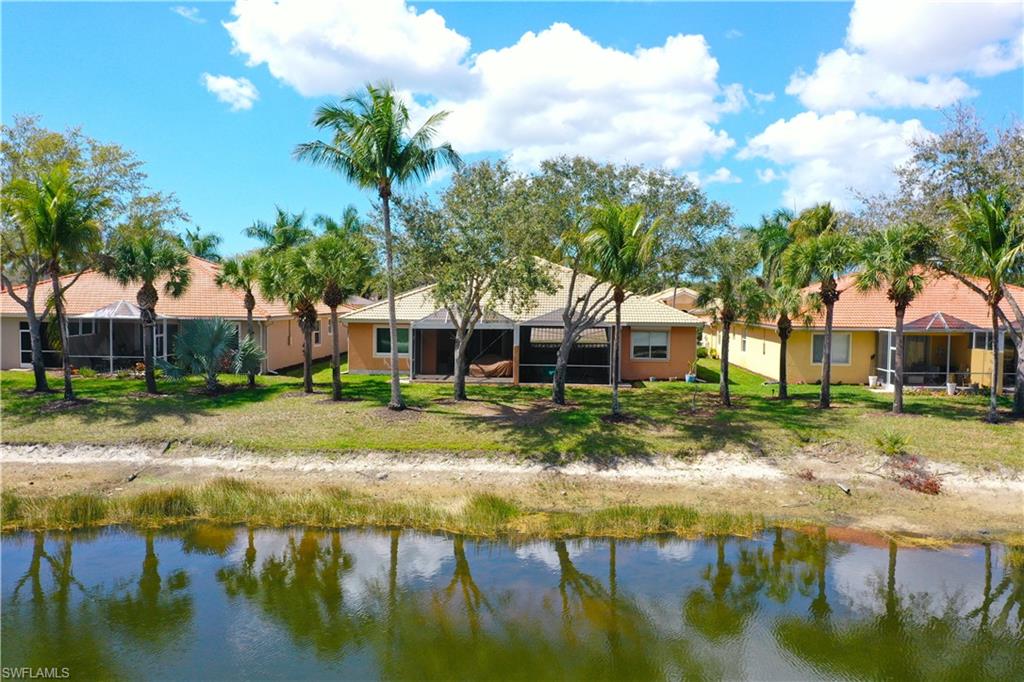 Professional interior pictures coming! Lovely lakefront villa in desirable Reflection Lakes gated community. This home offers beautiful lake views from the spacious screened lanai. Many recent upgrades throughout including AC (2022), brand new luxury vinyl tile flooring (late 2025), gas powered generator, Plantation Shutters on windows, recessed lights, upgraded fixtures, 6 inch crown and baseboard molding, master and guest bathrooms renovated in 2025, new high-quality Penntek concrete coating on garage and lanai floors (lifetime warranty), re-imagined lanai (2024), and whole-house ENVIRO water filtration system with 50-gallon hot water tank. The kitchen offers wood cabinetry, stainless steel appliances, granite counters, a breakfast nook and a pass through to the dining living space. The master bathroom is spacious and the ensuite bath features a frameless glass enclosed walk in shower, upgraded lighting and dual sinks. The additional bedrooms provide plenty of space for friends and family. A built in Murphy bed allows conversion to office or bedroom. All windows have electric hurricane shutters for optimum protection. Low fees and no CDD, Reflection Lakes provides a clubhouse that consists of a state-of-the-art fitness center with locker rooms and showers, rooms for meetings and activities, Library, billiards, ballroom, catering kitchen, outdoor heated pool with splash area, bocce ball, BBQs and pavilion. Reflection Lakes is a short distance from downtown Naples, Marco Island, shopping, and attractions.