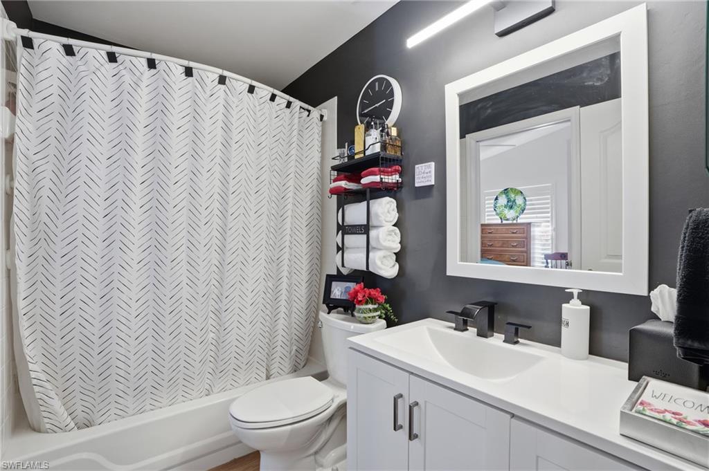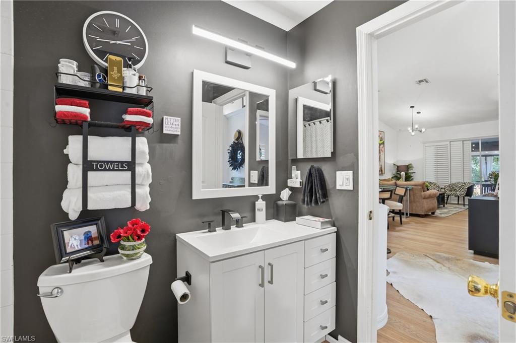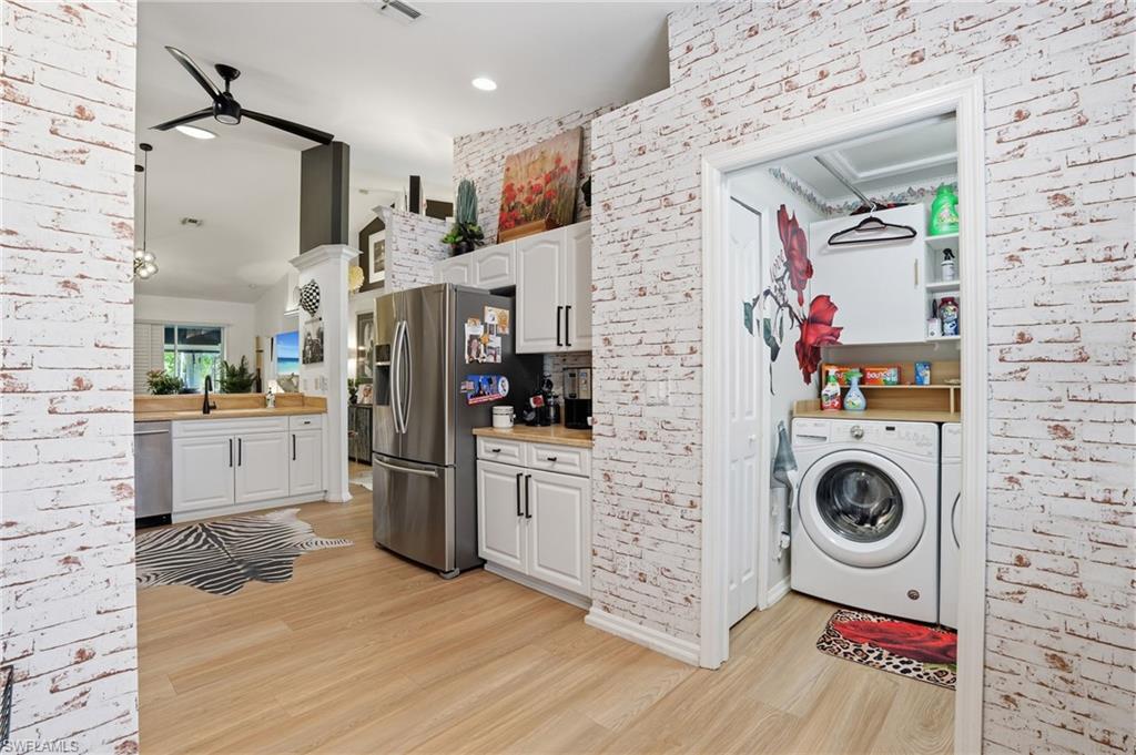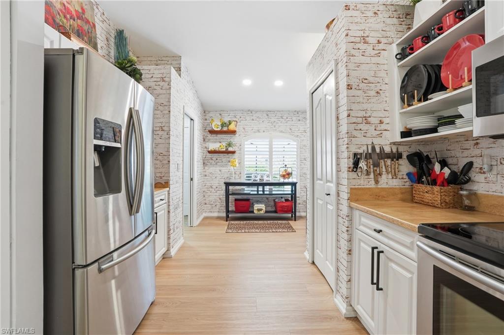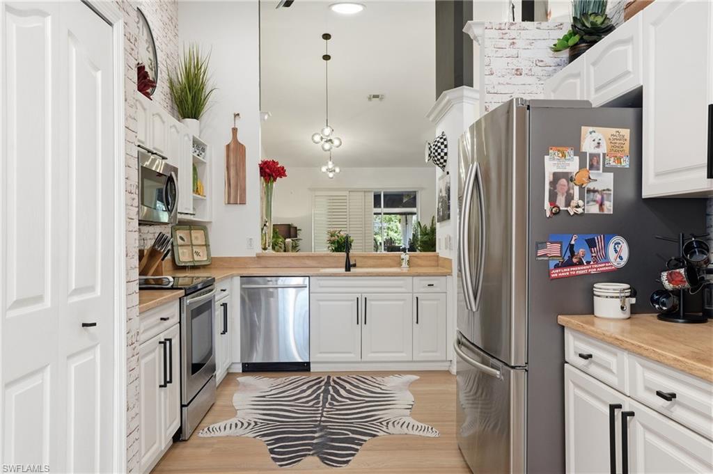 Magazine-worthy style without the magazine-worthy price. Set on a private corner lot in a gated community, this beautifully remodeled 3 bedroom, 2 bath villa delivers the kind of design, warmth, and indoor-outdoor living that buyers dream about. Designed by renowned interior designer Faith Ashley and offered fully furnished, this is a true move-in-ready showstopper. Just bring your toothbrush and start living the Naples lifestyle in style. Inside, the home is filled with thoughtful upgrades and elevated finishes, including luxury vinyl flooring, plantation shutters, fresh paint throughout, designer lighting and fans, California Closets, and an updated guest bath vanity with a clean, modern feel. Every space has been curated with a polished eye, creating a home that feels stylish, welcoming, and effortlessly livable. Step outside and the charm continues. Surrounded by a lush preserve for added privacy, the outdoor living spaces create a true tropical retreat. Relax in the step-down fireplace lounge with sofa seating, a cantilever umbrella, and fire feature for cozy evenings. Enjoy meals on the elevated dining patio, or entertain on the expansive screened lanai, which adds approximately 300 square feet of additional living space and features a full bar, comfortable seating, and a brand-new pool table. There is also room to add your own private pool, giving the next owner the opportunity to make this special property even more spectacular. Additional highlights include extra guest parking just steps away, very low HOA fees, a private sprinkler system, no flood zone location, and the ease of purchasing a home that is sold beautifully furnished. Located in a peaceful community with convenient amenities, this villa is ideal as a full-time residence, seasonal getaway, or smart Naples retreat for someone who loves beautiful spaces without overspending. Stylish, furnished, and full of personality, this is the Naples home that proves great taste does not have to come with an over-the-top price tag.