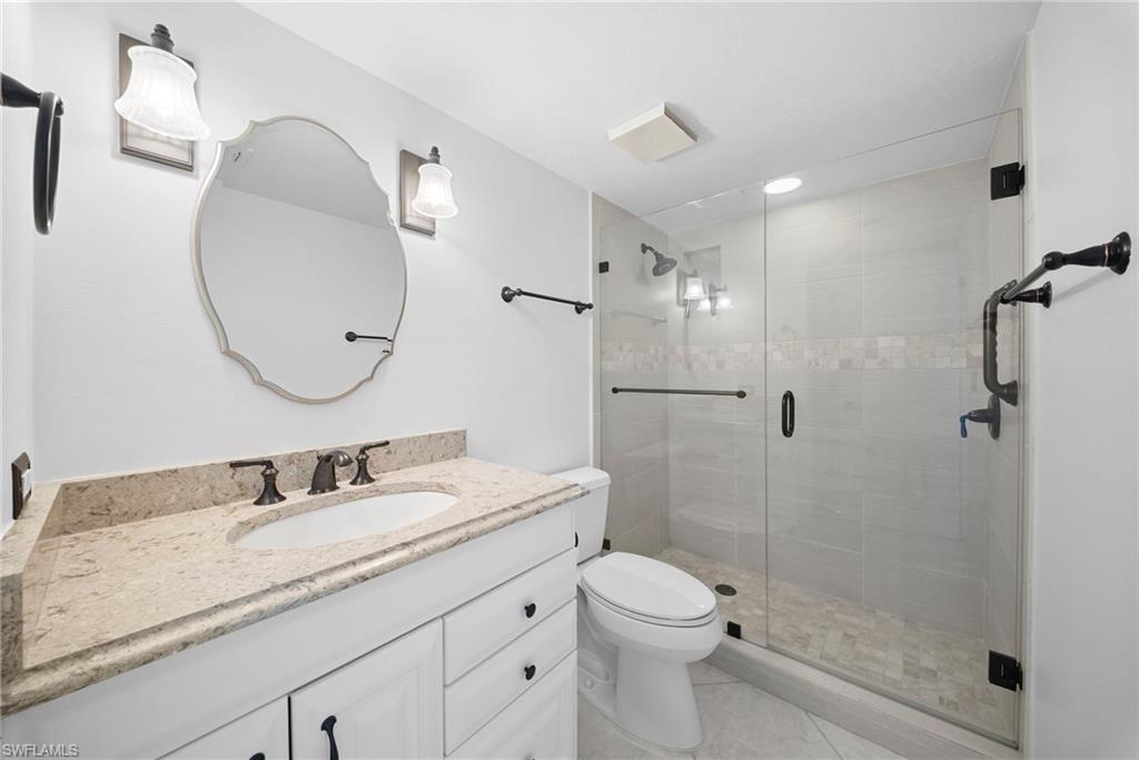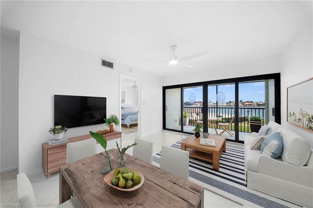 Enjoy island living in this charming 2-bedroom, 2-bath residence in the heart of Marco Island. This bright and inviting condo offers a comfortable open layout designed for relaxed coastal living, with spacious living and dining areas that flow to a private screened lanai, perfect for enjoying warm Gulf breezes. The home features impact windows and doors, electric hurricane shutters, a 2021 A/C system, and a 2019 water heater for added peace of mind. The primary suite offers generous closet space and an en-suite bath, while the guest bedroom provides comfort and privacy for visitors. Additional highlights include one deeded parking space and the opportunity to lease a boat slip through the community with a short wait list. Enjoy easy access to Marco Island’s beautiful beaches, boating, dining, and shopping, all just minutes away.