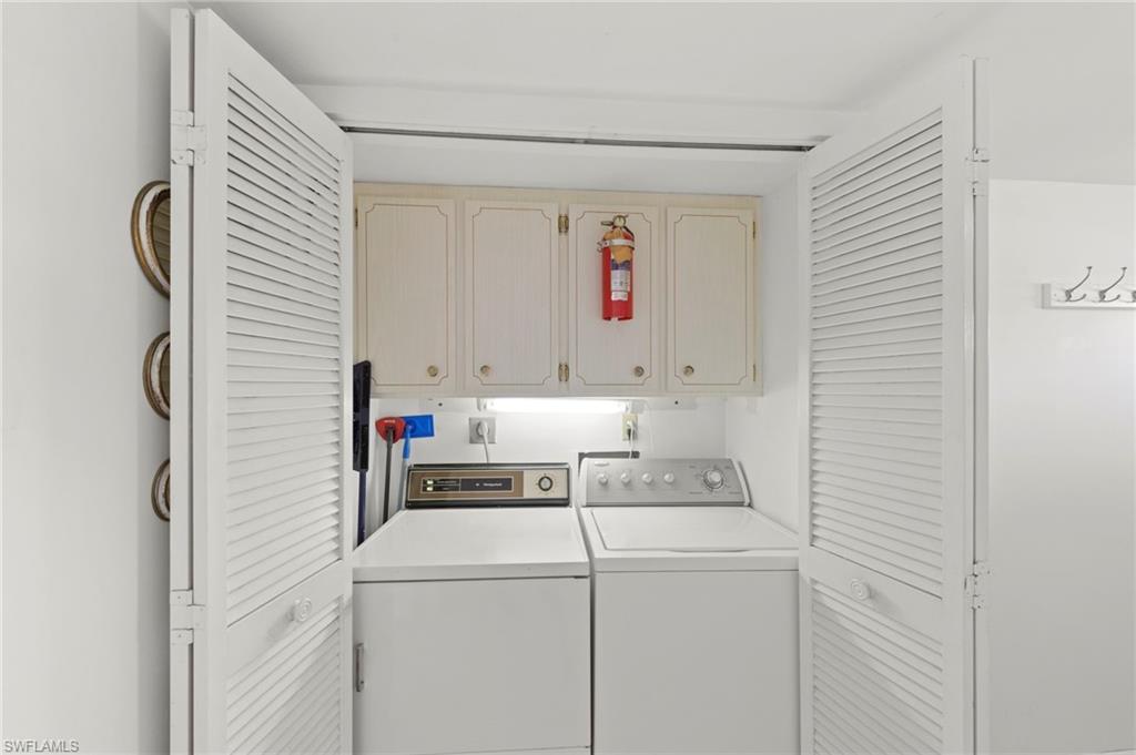 Enjoy relaxed Florida living in this spacious first-floor 2 bedroom, 2 bath condo at 219 Palm Dr #1 in The Glades Golf & Country Club. This well-maintained residence offers over 1,215 sq. ft. of living space and features a beautifully renovated kitchen with stylish cabinetry and trendy tile flooring, while the living area is enhanced with comfortable carpeting for a warm, inviting feel. The large screened lanai provides the perfect spot to enjoy morning coffee or evening breezes while overlooking the tropical surroundings. Additional updates include AC replaced in 2020. Excluded are two chairs that will be marked and art hanging in the living room that will be marked as owner. Located in the highly desirable Glades Golf & Country Club, residents enjoy bundled golf on two courses, multiple swimming pools, tennis, pickleball, bocce, shuffleboard, clubhouse dining at the 19th Hole, and a vibrant social calendar. All of this is just minutes from downtown Naples, beautiful Gulf beaches, boutique shopping, and fine dining.