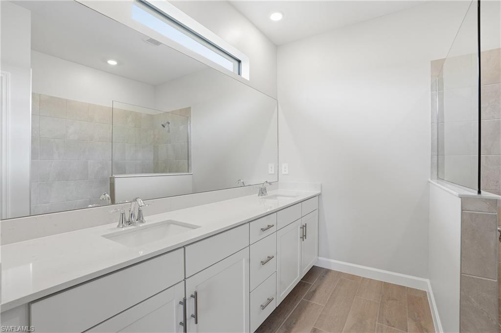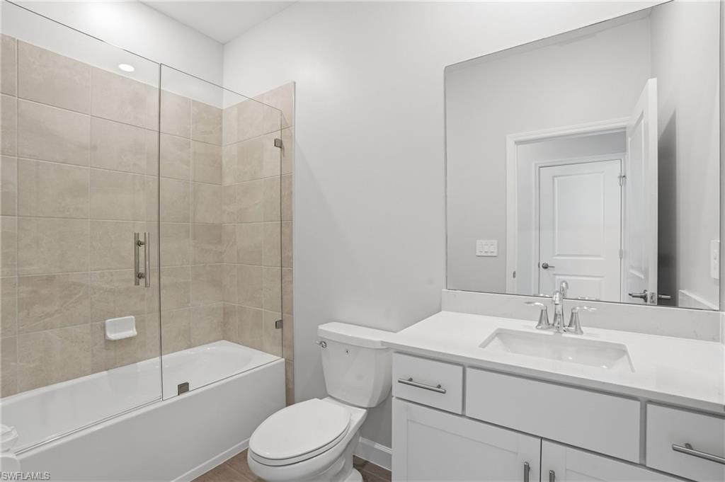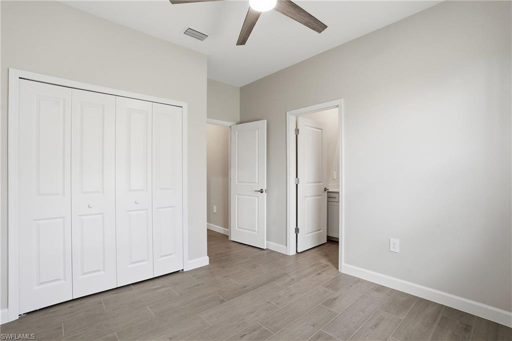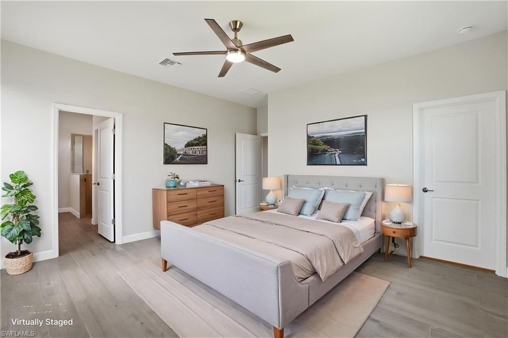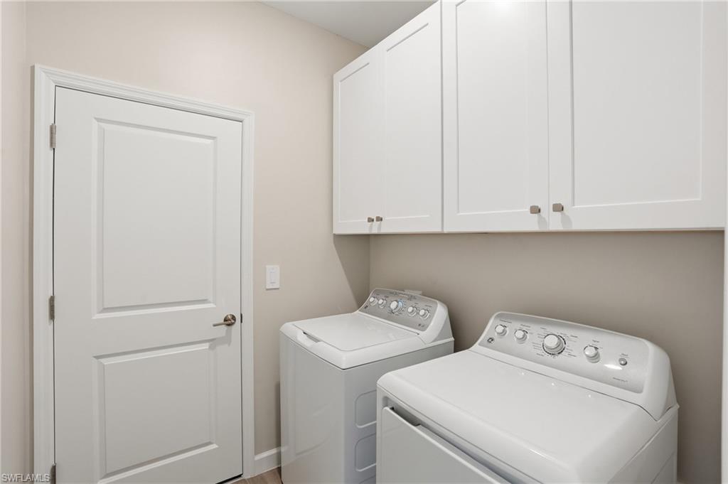 Welcome to 19213 Gentry Place, an exquisite brand-new, never-lived-in Trevi model located in the highly sought-after Verdana Village in Estero, Florida. This stunning four-bedroom, three-bathroom home offers 2,032 square feet of thoughtfully designed living space with luxurious upgrades and high-end finishes throughout. Step inside to an inviting open-concept floor plan featuring elegant tile flooring, recessed lighting, and crown molding in both the main living area and the owner’s suite. The dining room showcases beautiful custom trim details that add a touch of elegance and architectural character to the space. The spacious family room is highlighted by a custom marble entertainment wall with a built-in fireplace and mounted TV, creating a warm yet modern focal point that is perfect for relaxing or entertaining. The gourmet kitchen is ideal for both entertaining and everyday living, featuring a large center island, stainless steel appliances including a gas cooktop, gas oven, and refrigerator, a custom glass tile backsplash, walk-in pantry, and a cozy breakfast nook. Additional highlights include under-cabinet and above-cabinet lighting that provide both ambiance and functionality. Each bedroom is generously sized with walk-in closets, while the bathrooms feature dual vanities and upgraded custom glass shower doors. The owner’s suite serves as a private retreat complete with a spa-inspired en-suite bath and designer finishes. Step outside to a private covered lanai with northern exposure overlooking a beautiful lake view, along with a private side yard and upgraded Calusia landscaping, creating the perfect setting to enjoy Southwest Florida’s outdoor lifestyle. Additional upgrades throughout the home include a built-in entertainment center with fireplace and mounted TV in the living room, designer ceiling fans and upgraded lighting fixtures, custom tile accents, laundry room cabinets, and an epoxy-coated garage floor. Located in a no-flood zone, this home offers peace of mind while still being conveniently close to Southwest Florida’s beautiful beaches, premier shopping, dining, and Southwest Florida International Airport. Residents of Verdana Village enjoy access to world-class amenities including indoor and outdoor pickleball courts, indoor and outdoor tennis courts, a state-of-the-art fitness center, an indoor sports complex, and a resort-style pool with a full-service pool bar. The community also features onsite dining at the Drift Restaurant and Craft Lounge, as well as a playground and dog park. For added convenience, residents have golf cart access to nearby retail shops including Publix, Dunkin’ Donuts, The UPS Store, Fifth Third Bank, and New York Pizza and Pasta. This is your opportunity to own a designer-upgraded, move-in-ready home in one of Southwest Florida’s most dynamic communities and experience the Florida lifestyle where every day feels like a vacation. Schedule your private showing today.