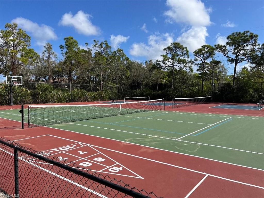 This modern, recently updated and remodeled Villa is located on a private street in this desirable quiet community of Coconut Shores. As you enter thru the lovely landscaped front door area, the large foyer greets you and you will imagine yourselves enjoying this home. The 2 guest bedrooms share a large Remodeled full bath and separate from Main Bedroom area. 1st guest bedroom can be a den/office or full bedroom. All the rooms have wonderful natural Fl Sunlight to warm you. The kitchen is spacious, features quartz counters, newer stainless steel appliances, large eat at bar area, as well as separate eat in kitchen. Again, more natural light. Windows have plantation shutters for a high end touch. The more formal dining area is convenient to the kitchen, as well as the living room for welcoming entertaining space. Living room flows onto the very large, screened lanai. This area has electric hurricane shutters to protect outdoor furnishings while away. Main bedroom is ensuite with large soaking tub, separate , dual sinks and modern fixtures. No flood insurance needed as it is in X Flood Zone status on the W. side of 41. Resort-style community features pickleball, tennis, pool,spa and fitness center all with tiki bar and grills. Walk to Coconut Point shops and restaurants as well as health facilities nearby. Newer roof and spacious 2-car garage. Just bring your toothbrush.