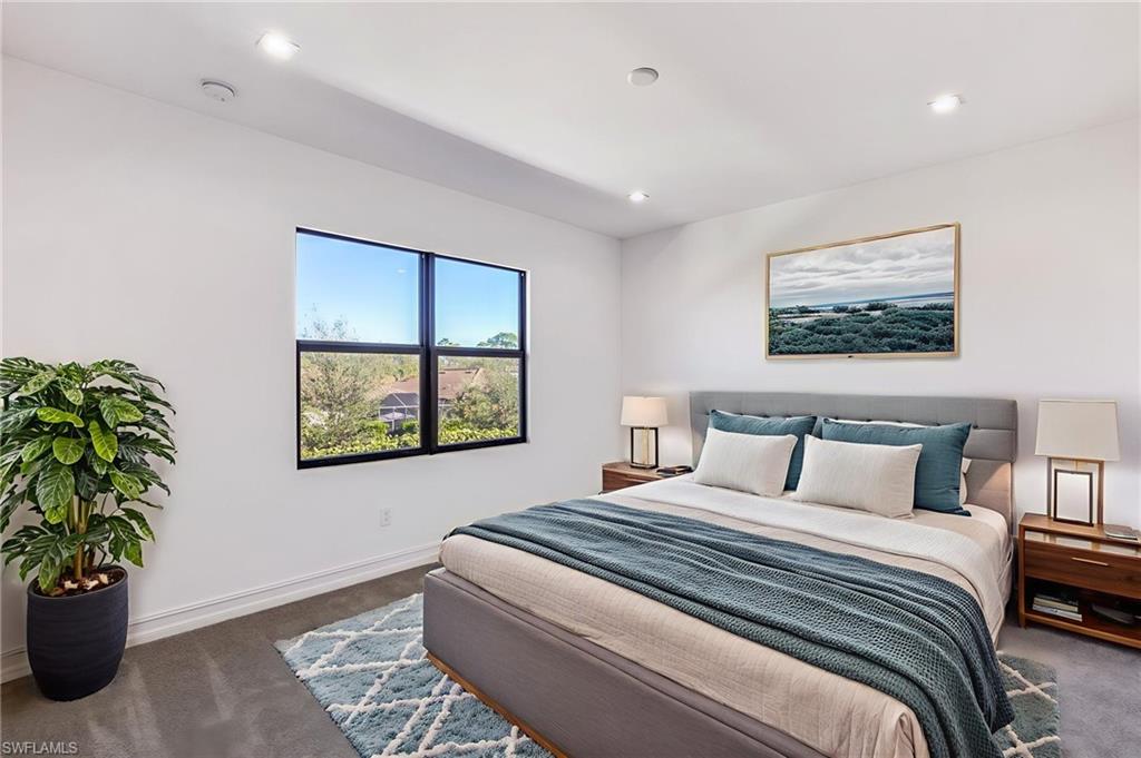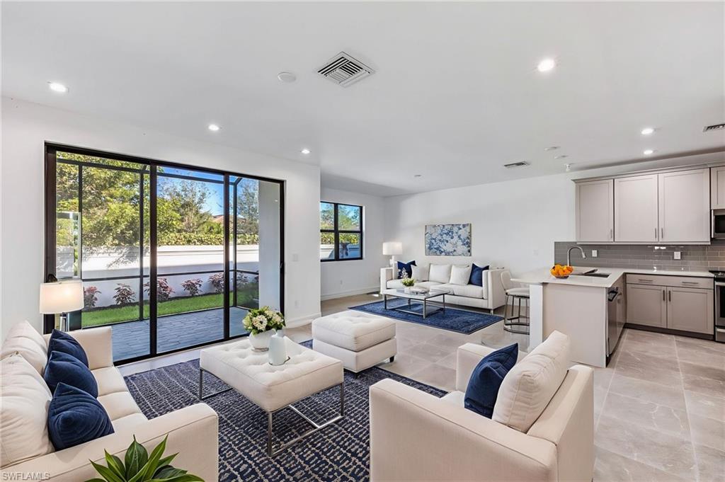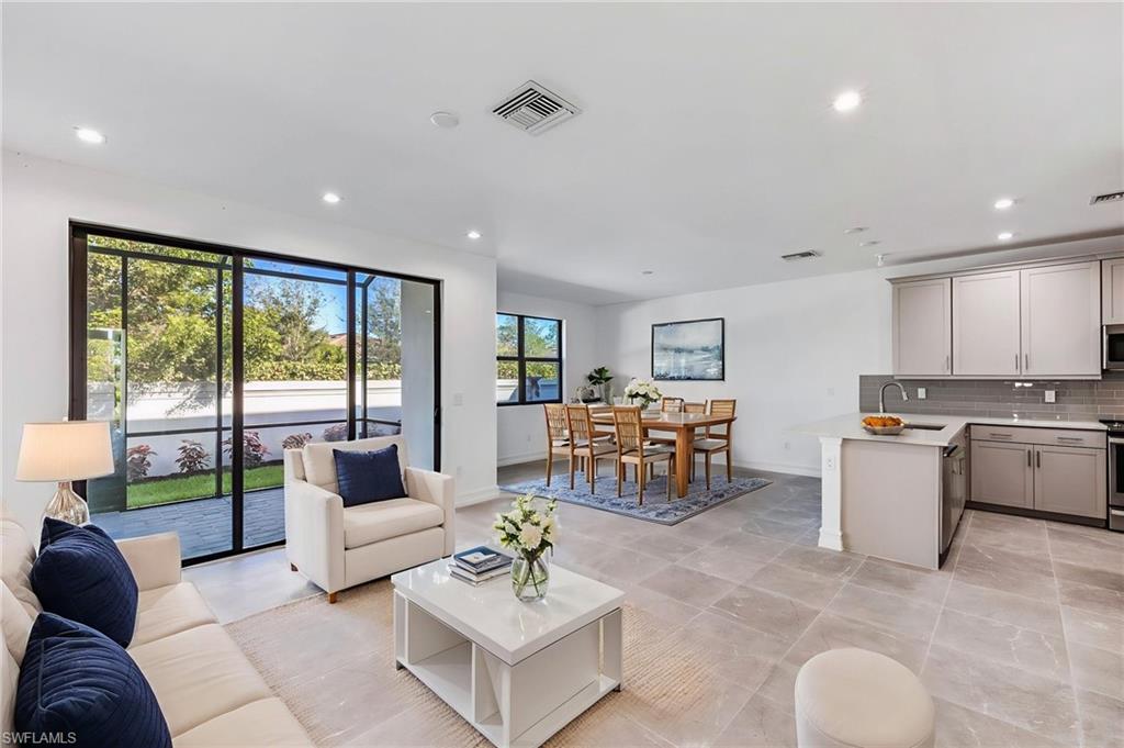 Contemporary living awaits in this End-Unit townhome in Vanderbilt Reserve, ideally positioned on a private corner lot that allows for additional windows and abundant natural light enjoyed only by end units. Offering 2,270 square feet of total space including a spacious two-car garage, this thoughtfully designed two-story residence welcomes you with a roomy foyer that opens to a bright living area and generous dining space. The open-concept layout creates a natural flow across the main living areas, with the kitchen overlooking it all and featuring an oversized breakfast bar perfect for casual dining and gathering. Upstairs, the primary suite offers an en-suite bath and an oversized walk-in closet. Two additional guest bedrooms provide comfortable accommodations and ample closet space. A laundry room is also located on the upper level for everyday convenience, making household tasks easily accessible to all bedrooms. With 2.5 bathrooms throughout--a convenient half bath is located on the main floor--the home offers flexibility and comfort for both residents and guests. The screened lanai is an inviting space ideal for relaxing or entertaining while enjoying the privacy of the corner lot setting. The spacious two-car garage offers direct entry into the home. Residents of Vanderbilt Reserve enjoy a gated community setting with resort-style amenities including a heated pool, spa, fitness center, and clubhouse. Ideally located just minutes from Mercato, downtown Naples, and the area’s award-winning Gulf beaches, this home offers an exceptional combination of comfort, location, and lifestyle.