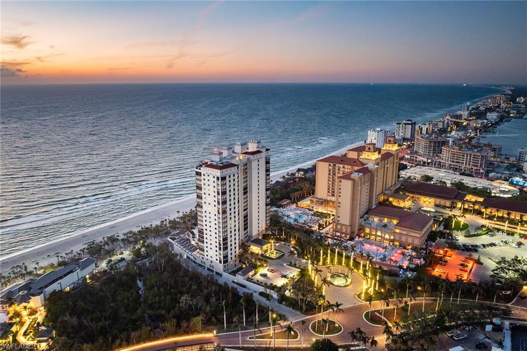 Rarely available and sought after, this meticulously maintained three-bedroom, three-bath 14th-floor end unit features floor-to-ceiling glass doors opening to an expansive lanai with unobstructed views of Gulf waters and iconic sunsets. The great room seamlessly integrates living and dining spaces. The chef's kitchen features white cabinetry, granite countertops and stainless steel appliances, all bathed in natural light from wraparound windows. An adjacent wet bar provides temperature-controlled wine storage. The owner’s suite offers a sanctuary of relaxation with a spa-inspired primary bath and an oversized walk-in closet. Further enhancing the space are two en-suite guest rooms, with option to transform one into a custom office, and a second lanai. The Remington's amenities are comparable to a fine resort. The recently renovated lobby and social rooms exude modern elegance, while a state-of-the-art fitness center, resort-style pool, outdoor dining space and fire pit cater to every facet of leisure and wellness. The Remington's location is unrivaled as residents enjoy direct access to the Bay Colony Beach Club and Ritz-Carlton.