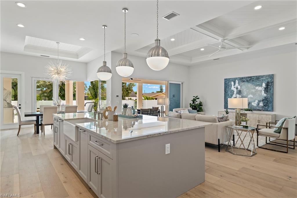 Exciting opportunity for new construction on a rare lot and a half in Naples Park! This spectacular 4 bedroom + den, 4.5 bath residence designed by South Florida Architecture showcases exceptional craftsmanship and elevated design throughout. The open-concept floor plan features wide plank wood flooring, hurricane-impact windows and doors, and Lutron smart lighting throughout. Each bedroom offers privacy and comfort with its own en-suite bathroom, creating an ideal layout for family and guests. The light-filled chef’s kitchen is beautifully appointed with custom high-end cabinetry, and JennAir appliances including a gas cooktop, seamlessly flowing into the main living and dining areas. A dramatic 90-degree sliding glass wall opens the home to an expansive outdoor living space complete with a summer kitchen, resort-style gas-heated pool and spa, and a poured concrete pool deck, creating the perfect setting for entertaining and embracing the Florida lifestyle. Built on an oversized lot with elevation exceeding current building requirements and finished with a durable metal roof, this home offers both quality construction and modern coastal design. This exceptional Naples Park residence combines luxury finishes, thoughtful design, and a prime location just minutes from Mercato, Vanderbilt Beach, and the best of North Naples dining and shopping.