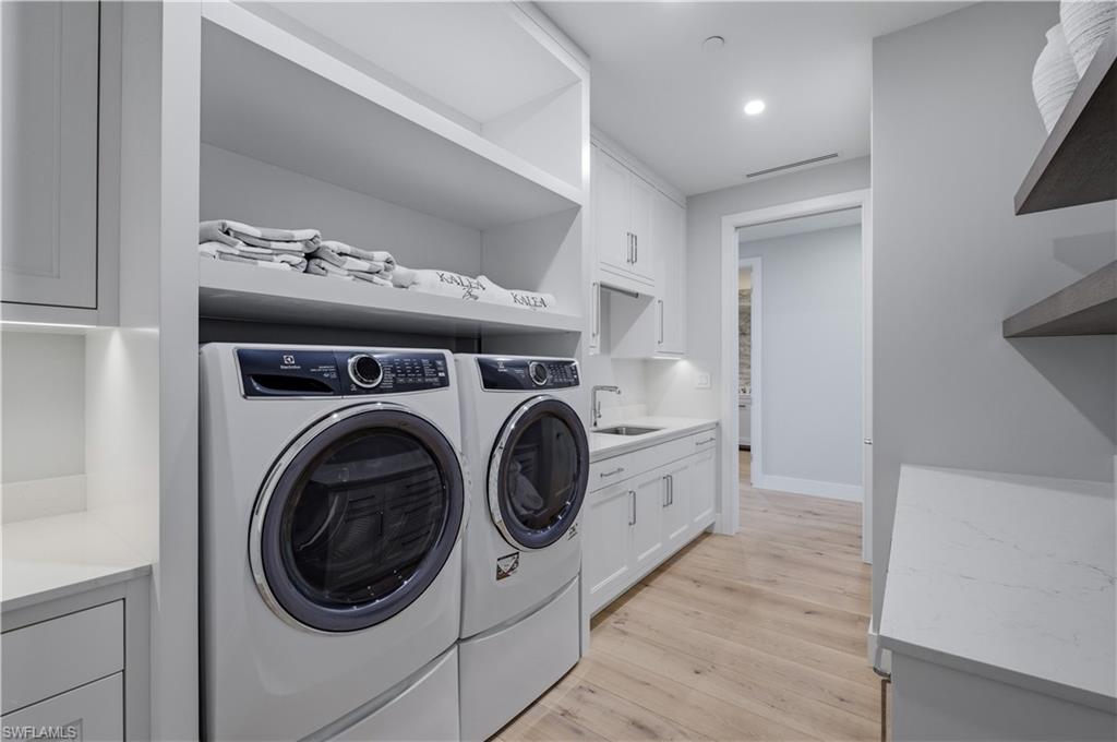 Penthouse 05 in Kalea Bay Tower 400 offers a rare combination of award-winning design, expansive Gulf views, and access to one of Naples’ most coveted five star developments. This professionally designed residence—recipient of a Sand Dollar Award for interior design—features 10-foot ceilings, wood flooring, and exceptional custom millwork, designer lighting and built-in cabinetry throughout. The chef’s kitchen is equipped with Sub-Zero and Wolf appliances, including a natural gas cooktop, and is complemented by a fully outfitted butler’s pantry, providing additional preparation space and storage ideal for entertaining. A striking architectural feature of the home is the 32 feet of sliding glass doors that open to the expansive outdoor living lanai. From here, the panoramic views sweep west and southwest across the Gulf of Mexico, stretching along the coastline toward Vanderbilt Beach and south toward Naples’ shoreline—delivering dramatic sunsets and an ever-changing coastal horizon. The owner’s suite has the feeling of sitting on the water, framed by a wall of windows that creates the sensation of floating above the Gulf. The suite includes a spa-inspired bath and a substantial custom closet. Two additional guest en-suite bedrooms provide privacy for visitors, while a dedicated office offers a quiet workspace. Even the laundry room is thoughtfully designed, with custom cabinetry and generous storage rarely seen in condominium living.FOR CAR LOVERS THIS COMES WITH A EXTRA LARGE GARAGE THAT COULD FIT UP TO 3 CARS. Residents of Tower 400 enjoy access to the Kalea Bay Club, the centerpiece of the community’s amenity experience. The club features multiple resort pools, a full-service restaurant and bar, a state-of-the-art wellness center, tennis and pickleball programs, and a vibrant social calendar that creates a true resort lifestyle. In addition, Tower 400 offers its own private rooftop amenity level, including a rooftop pool with sweeping views, outdoor lounge areas, and a rooftop fitness center designed to take full advantage of the Gulf vistas. Penthouse 05 represents an exceptional opportunity to enjoy award-winning design, extraordinary Gulf views, and the full luxury lifestyle offered at Kalea Bay.