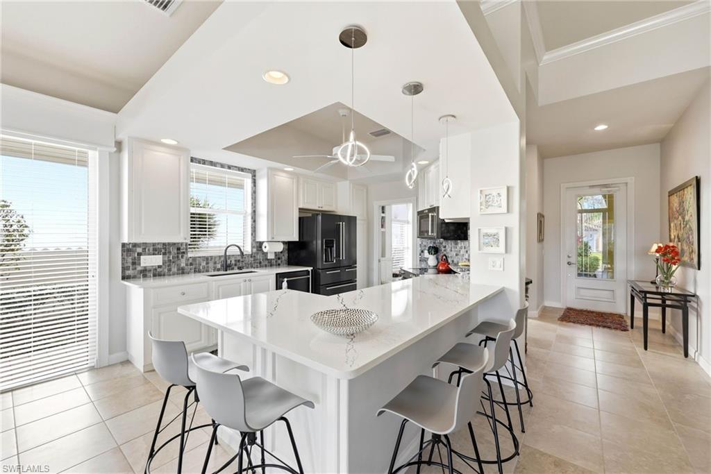 Updated Oakmont Model with SOUTHERN EXPOSURE "Built Solid " UPDATED ROOF. YOU CAN NOT BUY A BETTER BUILT HOME THEN THIS ORIGINAL DIVOSTA HOME. THIS IS THE PERFECT HOME TO PUT A CUSTOM-BUILT POOL AND SPA! THE INTERIOR IS UPGRADED WITH CUSTOM FEATURES: UPDATED KITCHEN HAS QUARTZ COUNTER TOPS GLASS BACKSPLASH WITH HIGHEND KITCHEN AID STAINLESS STEEL APPLIANCES. THE DEN HAS CUSTOM HAND CRAFTED BOOKSHELVES WITH BENCH, ALL SLIDERS HAVE BEEN CUSTOM FRAMED HAND-CRAFTED CORNICES. ALL BATHROOMS HAVE BEEN UPATED WITH QUARTZ COUNTERS. ALSO EXTENDED ITALIAN PORCEALIN TILE EVERYWHERE, BEACH COLORED WOOD FLOORING IN ALL BEDROOMS. Don't forget all of the features that you cannot purchase with a new Divosta Home: 12 & 10 FT CEILINGS, Poured Concrete walls, Smooth coat walls inside through-out, finished closets systems, 6 ft privacy wall ON BACK LANAI, central vac, Verona Walk offers 24 hr. guarded gated entry, lighted tennis, bocce ball, basketball and pickle ball courts, resort-size community Lagoon pool, lap pool, tot lot, over 20 miles trails, 24/7 gym, post office, café/restaurant, ice cream Shoppe, hair salon, car wash, gas station, library, computer center, ballroom, card rooms, and a full-time activities director. Convenient to both Naples and Marco Island beaches, shops and fine dining, regional hospital and Edison college nearby. The low HOA dues also include lawn care & irrigation, basic cable TV.