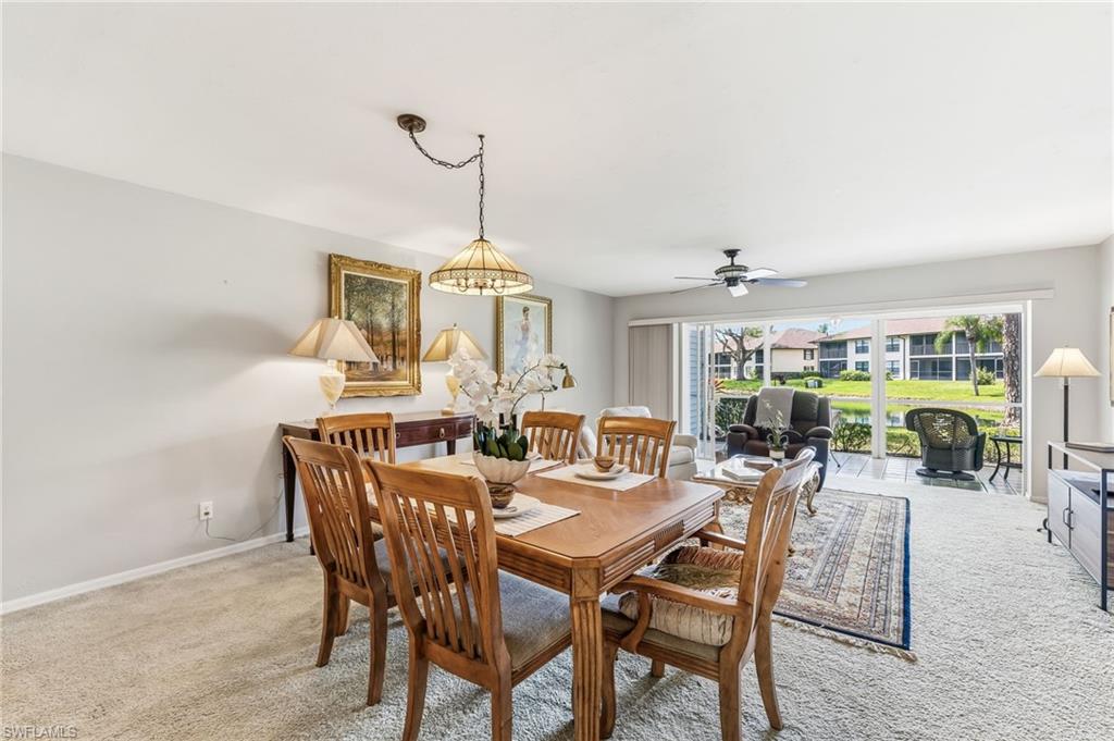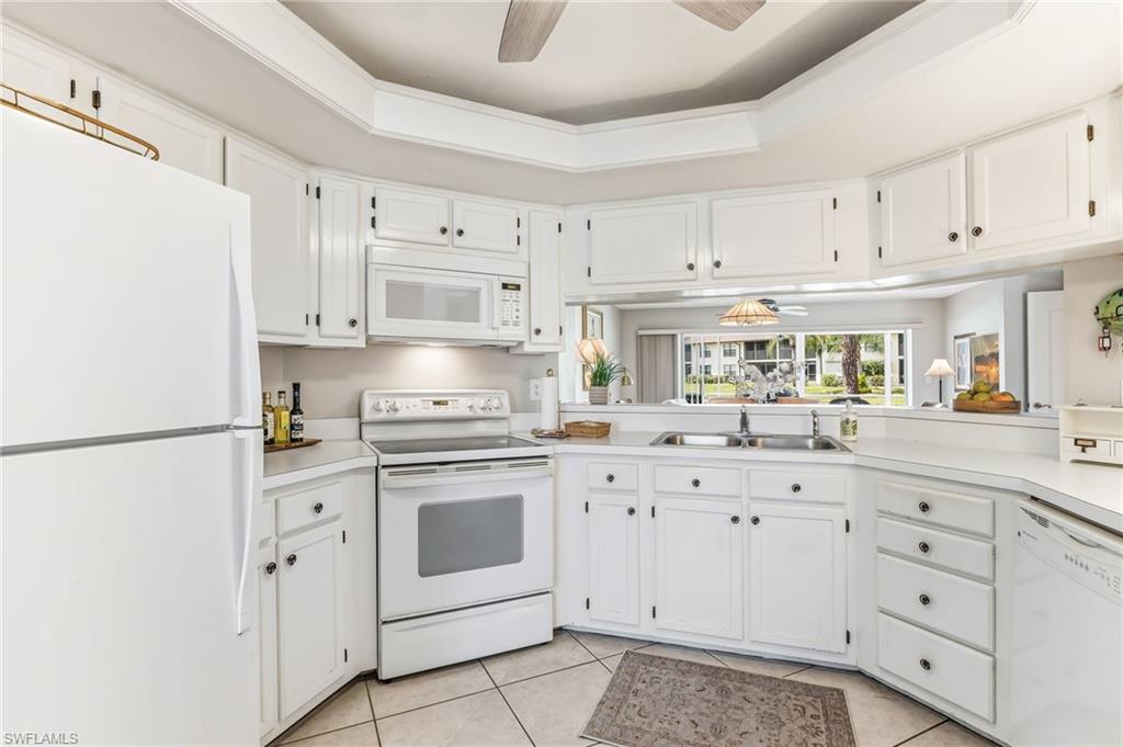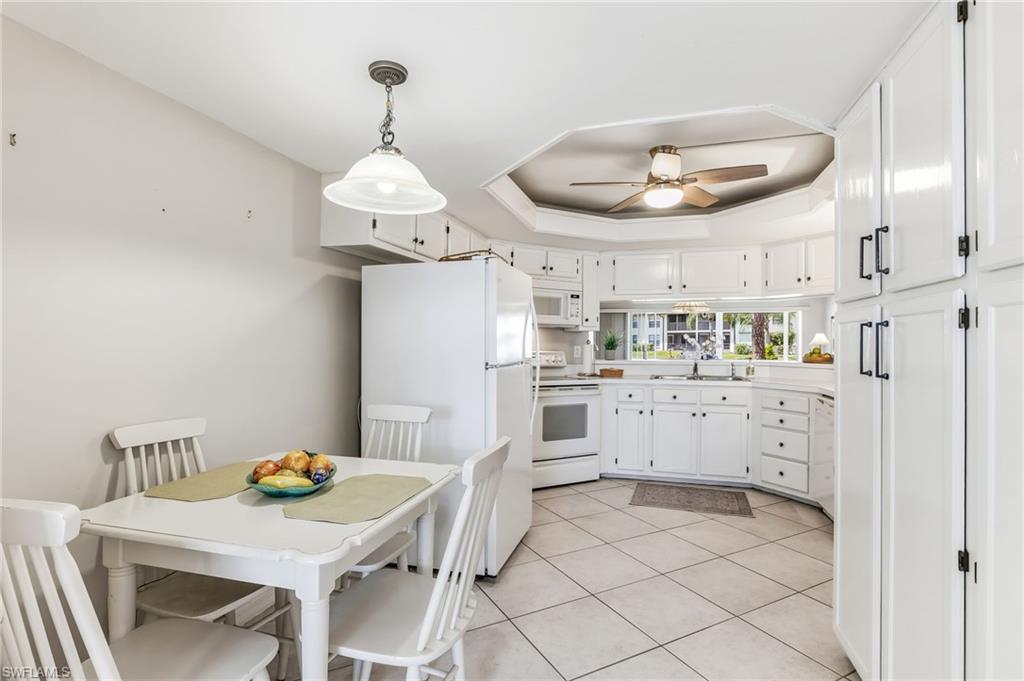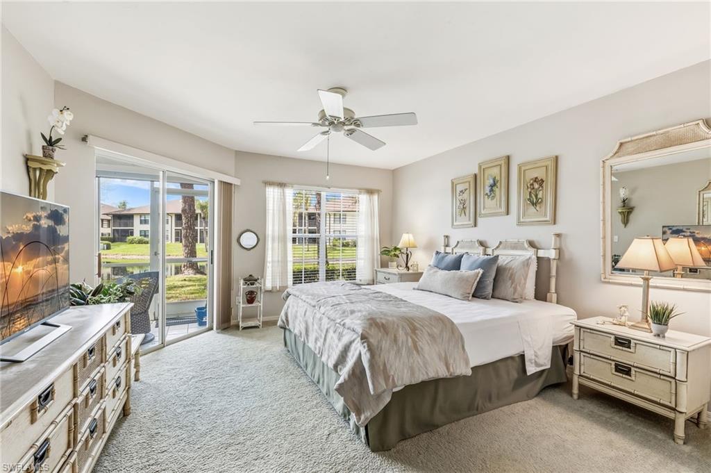 Lifestyle...Location & Convenience: Pinewoods Condo Live minutes from the beach, shops and restaurants in this turnkey furnished Pinewoods condo with serene lake views. Ideal for seasonal owners or full-time residents seeking turnkey comfort. Bright open layout connects the kitchen, den and living areas for effortless entertaining. Spacious interiors - over 1,600 square feet (2 beds+den / 2 baths) with a large primary suite, ensuite bath and sizable walk-in closet. The primary bedroom opens to the screened lanai, perfect for your morning coffee or enjoy a sunset with desirable western exposure. Both bedrooms can accommodate king-size beds. Functional kitchen design with abundant storage, breakfast bar and nook. Add to this - a spacious detached garage and a flexible bonus room for office / guest space. Amenities include pool, pickleball and tennis courts, all set in lush, professionally maintained grounds complete the package.