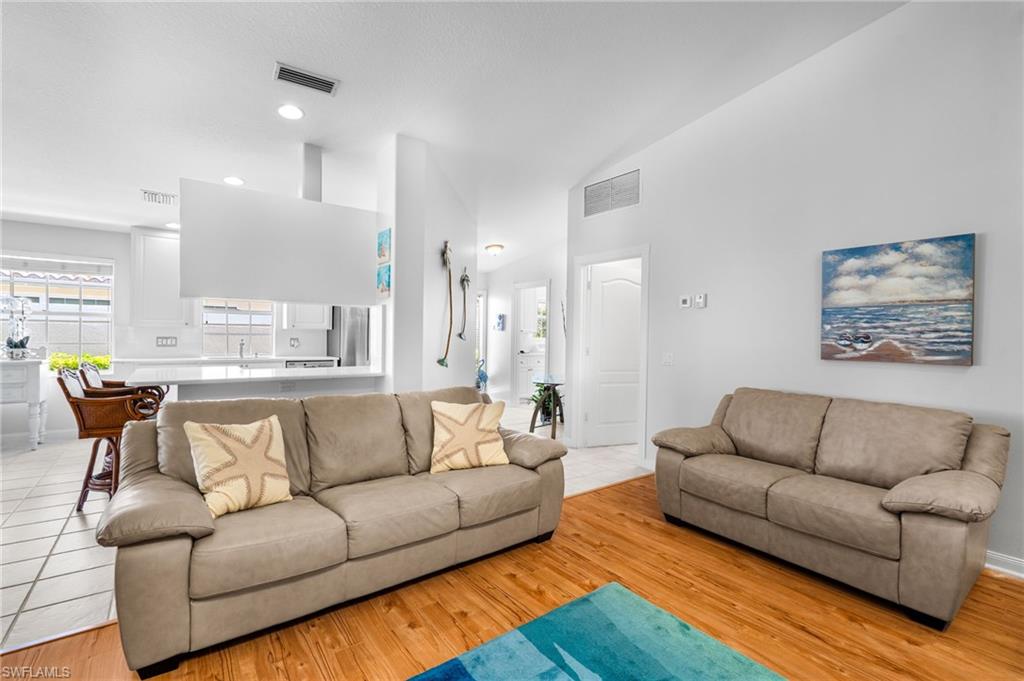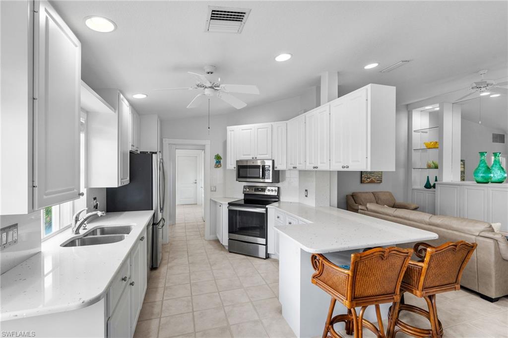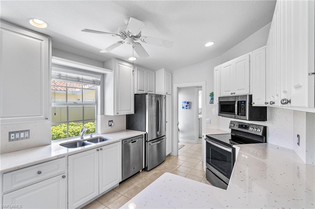 LAKE VIEWS – DESIRABLE NORTH NAPLES LOCATION – SPACIOUS VILLA LIVING! This charming villa home in Village Walk offers a comfortable and functional layout in one of North Naples’ most sought-after communities. The home features a bright kitchen with quartz countertops, white cabinetry, and stainless steel appliances, along with a separate dining area perfect for everyday meals or entertaining. The spacious living room includes custom built-ins, while the open den provides flexible space for a home office, reading room, or additional living area. Recent updates include new flooring in the living room, den, and primary bedroom. The primary suite offers generous closet space and a newly updated shower in the en-suite bathroom. A guest bedroom with a large closet and a nearby guest bath provide comfortable accommodations for visitors. The home also features abundant storage with multiple closets throughout. Enjoy peaceful lake views from the enclosed lanai or relax on the extended outdoor lanai—perfect for enjoying Florida’s beautiful weather. Village Walk is a highly desirable gated community known for its scenic lakes, walking paths, and resort-style amenities, including a community pool, fitness center, tennis courts, clubhouse, and a vibrant social atmosphere, all just minutes from North Naples beaches, shopping, and dining. THIS PROPERTY QUALIFIES FOR A 1% LENDER INCENTIVE IF USING PREFERRED LENDER, INQUIRE FOR MORE DETAILS**