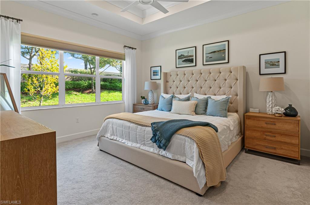 Welcome to a meticulously kept, move-in-ready home in the luxurious Valencia Bonita Adult Community! This impressive villa offers 2,024 square feet of luxury with impact-resistant windows and doors throughout the residence. The floor plan includes 2 spacious bedrooms with custom closets, a large den/study, and 2.5 bathrooms. The large den has 2 full size murphy beds that can sleep an additional 4 people. The upgraded kitchen with a built-in pantry, expansive quartz countertops, upgraded custom backsplash, additional cabinetry, and stainless steel appliances flows seamlessly into a light and airy great room. This well-arranged home also features a separate dining room, upgraded neutral tile floors, decorator ceiling fans, and a frosted glass front door. The garage has an upgraded epoxy floor, extra storage, an insulated garage door, and a whole-house water filtration system. Valencia Bonita residents enjoy the magnificent 45,000 sq ft community clubhouse, complete with a full-service restaurant/bar that offers inside/outside dining, a state-of-the-art fitness center, a variety of fitness classes, card rooms, art studios, spa/nail salon, 70+ resident clubs, and a grand social hall with a dance floor. Outdoor amenities abound, including multiple pools (resort style, lap, and resistance), a dedicated racquet club with pickleball and tennis courts, and bocce courts. A full-time on-site lifestyle staff ensures there is something for everyone to enjoy by providing a vibrant calendar of events, including shows and concerts.