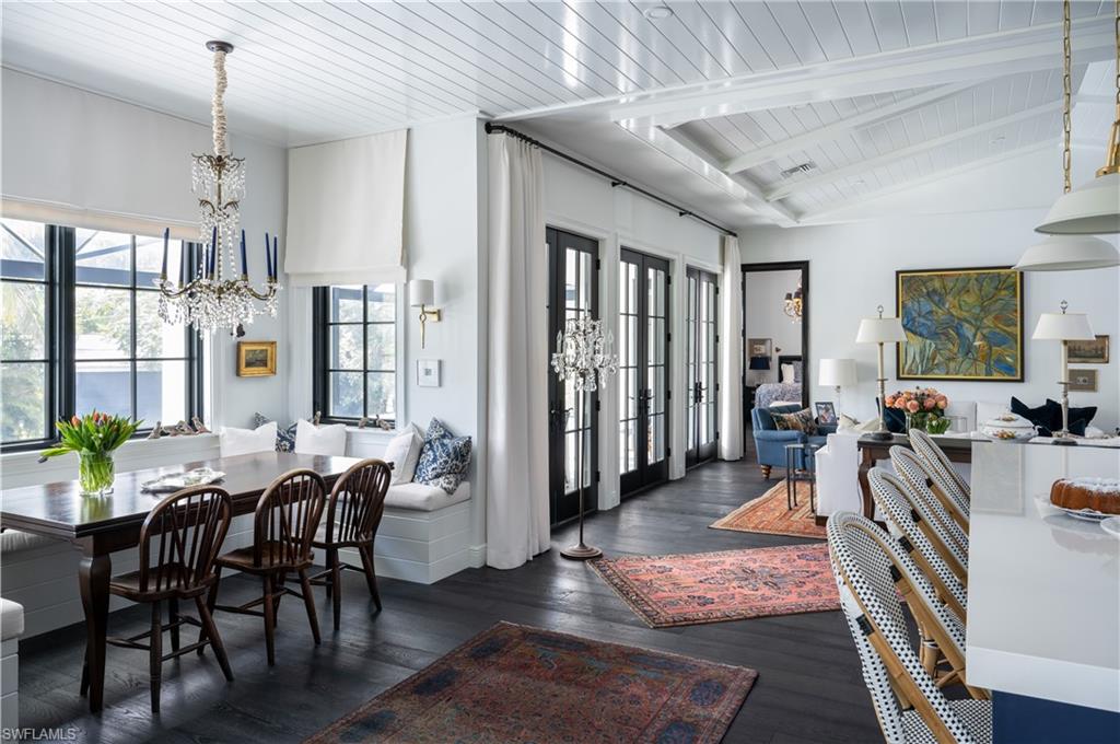 Stunning 2023 Cotter Construction pool home elevated over 11 feet and perfectly positioned on a HALF ACRE off the Imperial River. Just a short walk brings you to the heart of Downtown Bonita Springs and everything it has to offer, including Riverside Park, home to festivals and concerts, a new library, a food truck park, historic Shangri-La Springs, and a vibrant mix of restaurants, cafés, and boutiques. One of the area’s true highlights is Sugarshack, located less than half a mile away and known throughout Southwest Florida as a lively hub for music, art, and community events. Enjoy southern exposure for stunning sunsets over the river and optimal sunshine on the pool. Moss-draped trees create a picturesque backdrop, while the Hardie plank dock offers the perfect place to relax and watch manatees and dolphins glide by. This home offers 2,743 sq ft under air, 4 bedrooms + den, 3 full baths, 2 half baths, a 2-car garage, a private guest house, and hurricane-impact windows and doors throughout. The contemporary design showcases soaring vaulted ceilings with tongue-and-groove and beam accents, wood and tile flooring, and a wall of 9-ft French doors that flood the home with natural light. The chef’s kitchen features white quartz countertops, crisp white cabinetry, high-end appliances, a cozy breakfast nook, and a spacious butler’s pantry/laundry room with abundant storage. Step outside to the expansive screened pool deck with a picture-screen enclosure for unobstructed river and nature views, a large heated pool, and ample space for lounging. Beyond the lanai, the generous backyard includes a fire pit area, perfect for relaxing or entertaining. The primary suite offers a charming built-in bookshelf and window seat, along with a spa-like bath featuring dual vanities and a large glass walk-in shower. On the opposite side of the home are a guest suite with private bath, a cozy den, and a powder room. A spacious flex room—currently used as an art studio with its own half bath—can easily convert to an additional guest suite. The private guest casita includes a living area, kitchenette, bedroom, and full bath, ideal for visitors, a home office, studio, or rental opportunity. With no HOA and no rental restrictions, this property offers exceptional flexibility and investment potential. Conveniently located just minutes from Promenade Plaza and Coconut Point, and about 15 minutes to Mercato, Waterside Shops, and 5th Avenue South. Just 15 minutes to Bonita Beach and Barefoot Beach, with easy access to RSW via I-75 or Imperial Parkway.