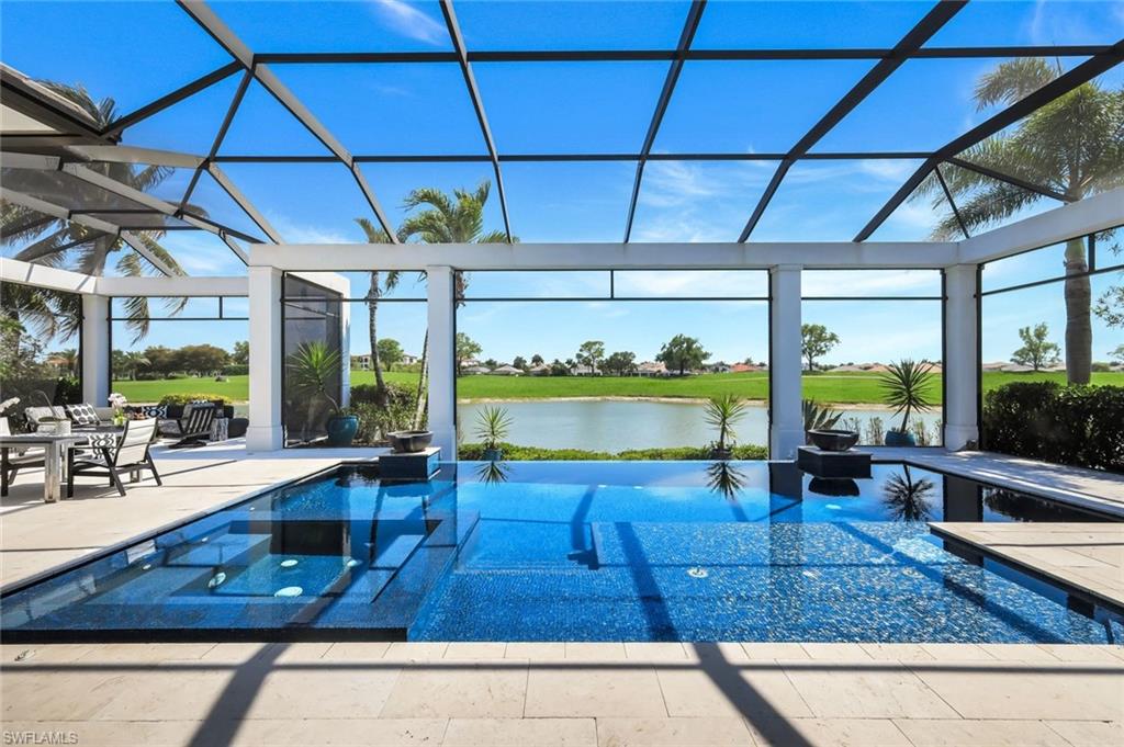 Welcome to an extraordinary, ultra-modern residence in the prestigious Seneca enclave of Talis Park, where refined coastal sophistication meets striking contemporary design. Perfectly positioned to capture serene lake and golf course views, this exceptional home offers a truly elevated luxury lifestyle in one of Naples’ most sought-after communities. Boasting 6 bedrooms, 5 full baths, and 1 half bath, this residence is defined by its expansive, light-filled interiors and grand sense of space. From the moment you enter, the home makes a bold statement with clean architectural lines, soaring ceilings, and an open-concept design that feels both impressive and inviting. Just off the entry, a stunning glass-enclosed wine room serves as a dramatic focal point—perfect for showcasing your collection in true style. The heart of the home is the designer kitchen, outfitted with premium appliances, sleek cabinetry, and an oversized island that seamlessly flows into the main living and dining areas—ideal for both intimate gatherings and large-scale entertaining. Walls of glass and expansive sliders blur the line between indoors and out, enhancing the home’s bright, airy ambiance. Step outside to the oversized screened-in lanai—an exceptional, fully enclosed outdoor living space designed for year-round enjoyment. This impressive retreat features a spectacular pool and spa, generous lounge and dining areas, a full outdoor kitchen, and a fireplace, all perfectly positioned to take in tranquil lake views across the golf course. With an abundance of space for entertaining, this outdoor setting rivals the finest private resorts. The luxurious primary suite offers a serene escape with a spa-inspired bath and refined finishes, while each guest suite is thoughtfully appointed with en-suite baths for ultimate comfort and privacy. Located within Talis Park, residents enjoy world-class amenities including championship golf, a grand clubhouse, fitness center, spa, and exceptional dining and social experiences—all just moments from Naples’ renowned beaches, upscale shopping, and fine dining. This is a rare opportunity to own a statement home that perfectly blends modern design, expansive living, and resort-style amenities in an unparalleled setting.