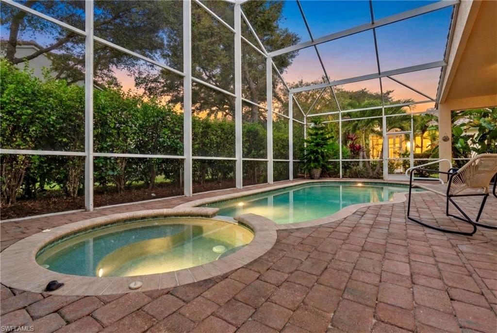 Looking for a beautiful home with a private pool and jacuzzi in a gated 55+ community? This desirable St. Kitts floor plan in Cascades at Estero offers comfort, style, and access to exceptional resort-style amenities. The home features 10-foot ceilings, 8-foot doors, 2 Bedrooms plus Den 2 bathrooms, a spacious great room with formal dining area, and a separate laundry room. The upgraded kitchen includes granite countertops, tile backsplash, and upgraded real wood cabinetry, with newer stainless steel kitchen appliances. The large primary suite offers walk-in closets and an ensuite bath with dual sinks, a separate soaking tub, and walk-in shower. Enjoy outdoor living with a oversized screened lanai and private pool with jacuzzi, plenty of privacy and sunshine! Perfect for relaxing or entertaining. Residents of Cascades at Estero enjoy an active lifestyle with amenities including tennis, pickleball, bocce, remodeled clubhouse with indoor and outdoor pools, jacuzzi, fitness center, sauna, pottery studio, billiards room, exercise classes, and a vibrant social calendar. We are also a golf cart freindly community. Conveniently located minutes from three major outdoor shopping centers, numerous dining options, public golf courses, and a short drive to the beautiful white-sand beaches of the Gulf. FLOOD ZONE X (no flood insurance required).