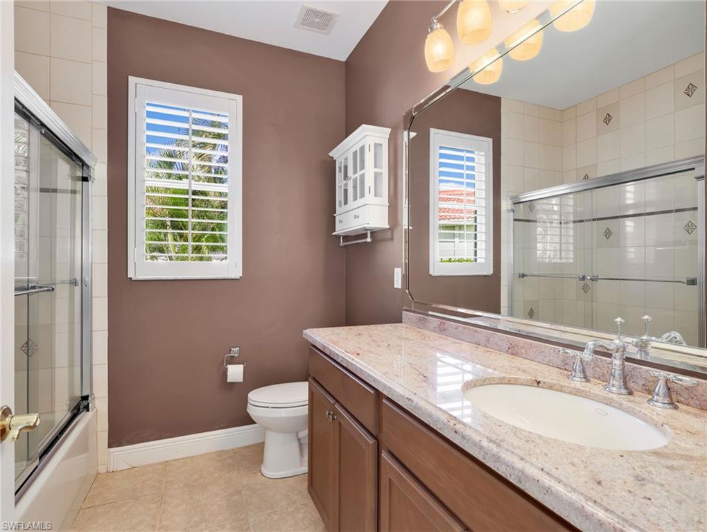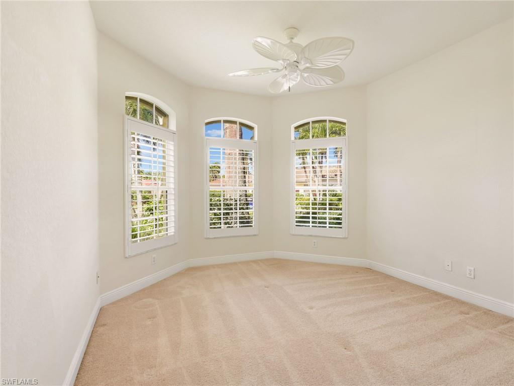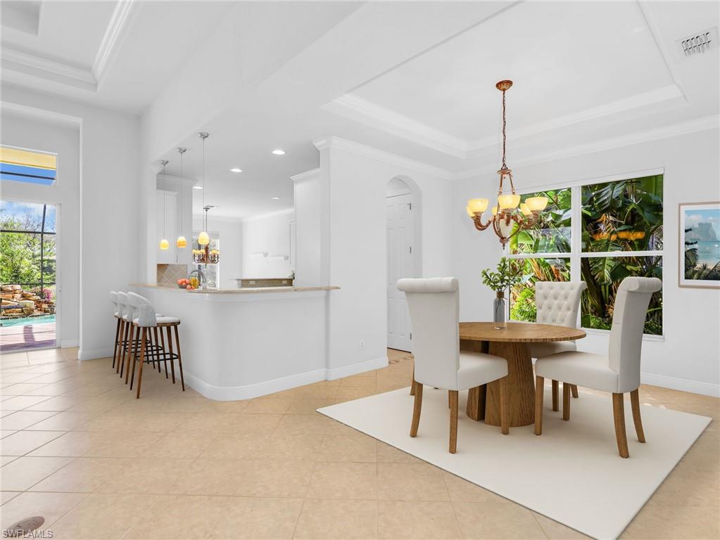 Positioned on one of the LARGEST pie shaped lots in Belle Lago and located at the end of a quiet cul de sac, this highly sought after Toll Brothers Saranac floor plan offers exceptional privacy, generous outdoor space, and beautiful lake views. The oversized homesite, private pool, extended screened lanai, NEWER ROOF and NEWER AIR CONDITIONING system combine to create a property that offers both comfort and peace of mind. This beautifully maintained ONE LEVEL residence offers over 2,500 square feet of thoughtfully designed living space with 3 bedrooms, a den, and 2.5 baths. Soaring 13 foot ceilings in the great room create a light filled and open atmosphere, while crown molding and refined architectural details add warmth and elegance throughout the home. The bright kitchen is designed for both function and style with abundant cabinetry, generous counter space, and seamless flow into the main living and dining areas. The spacious primary suite offers two walk in closets and a well appointed bath designed for comfort and relaxation. Step outside to the extended screened lanai where the pool and tranquil lake views create a peaceful outdoor retreat. The expansive pie shaped homesite offers a rare sense of privacy and space within the community, making it ideal for both relaxation and entertaining. Belle Lago is a NATURAL GAS community with a 24 hour guarded gate and resort style amenities including a clubhouse, fitness center, pool and spa, pickleball, Har Tru tennis courts, bocce, walking trails, and a playground. Residents may also enjoy optional golf membership and golf cart access to Estero Country Club through the private community path connecting the two communities. centrally located west of I 75, Belle Lago offers convenient access to Coconut Point, Miromar Outlets, Gulf Coast Town Center, RSW Airport, dining, entertainment, and Southwest Florida’s award winning beaches. With no CDD and low HOA fees that include lawn maintenance, cable, internet, ADT monitoring, a 24 hour guarded gate, and resort style amenities, this home offers both luxury and ease of living in one of Estero’s most desirable communities. Schedule your private showing today.