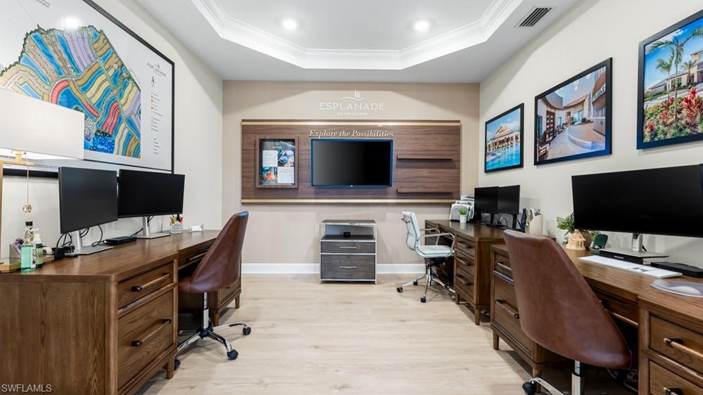 What's Special: Water View | Dedicated Study | Lake View | Dedicated Home Office | Pond View. New Construction - March Completion! Built by America's Most Trusted Home Builder. Welcome to the Marano at 15340 Giardino Drive Unit 101 in Esplanade by the Islands Coach Homes! This impeccable new coach home features an open and welcoming layout designed for everyday comfort. The expansive central living area brings together the gathering room with a cozy fireplace, the dining room, and the gourmet kitchen, which includes quartz countertops and upgraded shaker-style cabinets. Upgraded laminate plank flooring flows throughout the main living area, and whole house impact windows offer added peace of mind. Just off the gathering room, an outdoor lanai invites you to relax in the fresh air. The tranquil primary suite includes an en-suite bath and a spacious walk-in closet, while the secondary bedroom with its own en-suite bath, a half bath, a cozy study area, and a convenient laundry room complete this thoughtful design. Additional Highlights Include: Cafe appliance package, refrigerator, washer and dryer, and whole house blinds. Photos are for representative purposes only. MLS#226010943 - Esplanade by the Islands Coach Homes offers an unparalleled lifestyle with resort-style amenities and wellness programs to inspire and invigorate. Whether you’re seeking active adventures or peaceful retreats, this community delivers luxury and sophistication at every turn. Swim laps or lounge by the resort-style pool, sip a refreshing drink at the Bahama Bar, or recharge at the state-of-the-art wellness center. Stay energized with tennis, pickleball, and bocce courts, or indulge in unique experiences like wine tastings, cooking classes, and live concerts. The culinary center provides both fine and casual dining, along with opportunities to hone your cooking skills. From relaxing spa events to exciting excursions, Esplanade by the Islands makes every day a celebration of vibrant, carefree living.