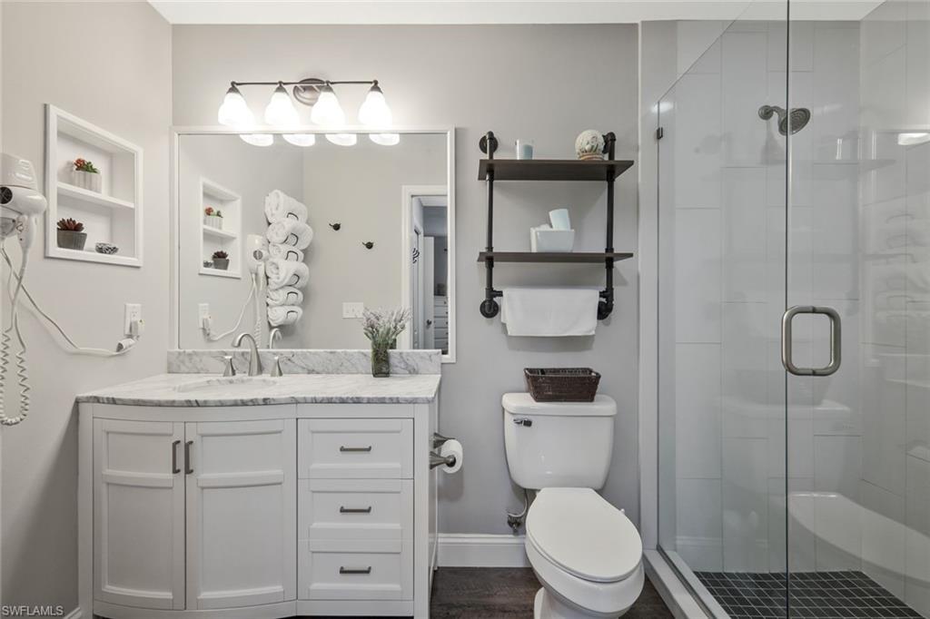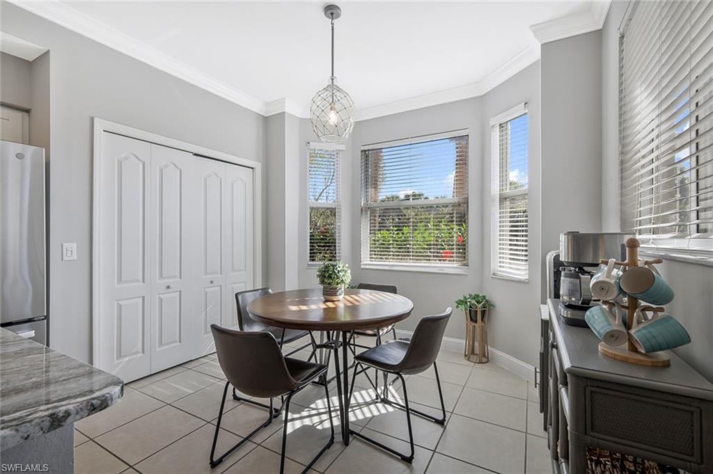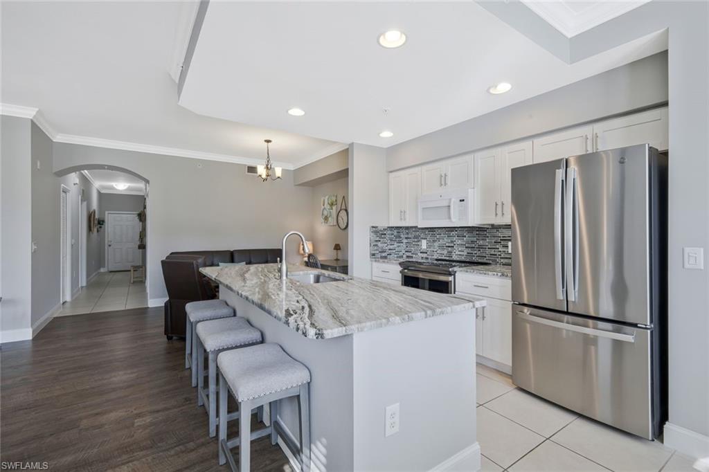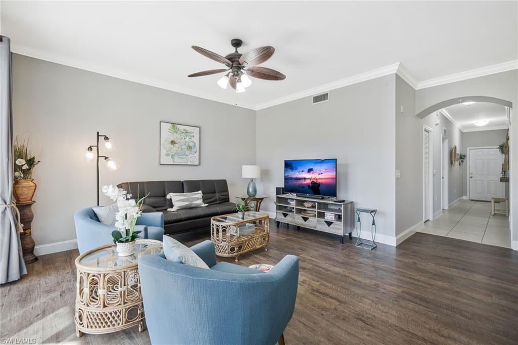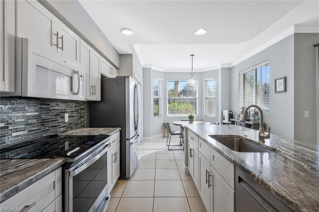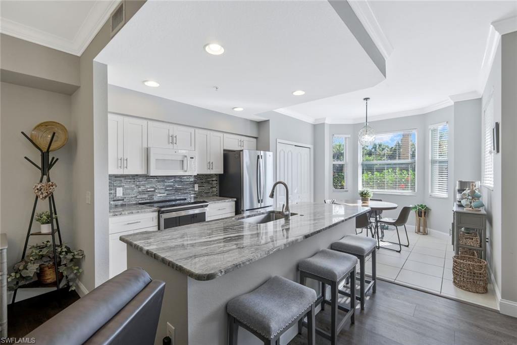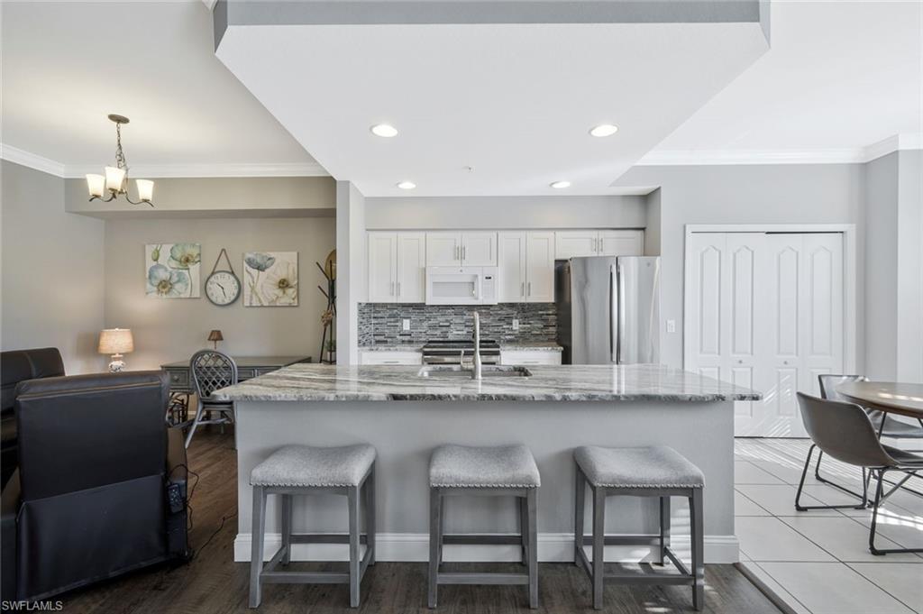 TURNKEY FURNISHED AND TASTEFULLY RENOVATED FIRST FLOOR Condo with PRIVACY! This LIGHT and BRIGHT 2bed 2bath floor plan is the MOST desirable and LIVES LARGE! Recently UPDATED w/ tasteful, modern, and contemporary FINISHES that include: New Premium Countertops in Kitchen & Baths, NEW KITCHEN CABINETS, NEW APPLIANCES, NEW FLOORING, NEW PAINT THROUGHOUT , NEW TRIM AND CROWN MOLDING. 20X20 MESH SCREEN INSTALLED in the fully enclosed lanai . A Covered Carport with designated parking and storage closet are included with sale. Residents of Bella Terra enjoy resort-style amenities including a resort pool and spa, 24-hour fitness center, tennis and pickleball courts, bocce, basketball, beach volleyball, walking paths, scenic lakes, playground, sports fields, and an additional community pool just steps away. Ideally located in the heart of Estero, you’re minutes from Miromar Outlets, Coconut Point Mall, Gulf Coast Town Center, Florida Gulf Coast University, and Southwest Florida International Airport, along with countless restaurants, shopping, and the beautiful Gulf beaches. Whether you’re looking for a full-time residence, seasonal getaway, or investment opportunity, this UPDATED FIRST FLOOR Bella Terra condo offers an exceptional combination of location, lifestyle, and value.